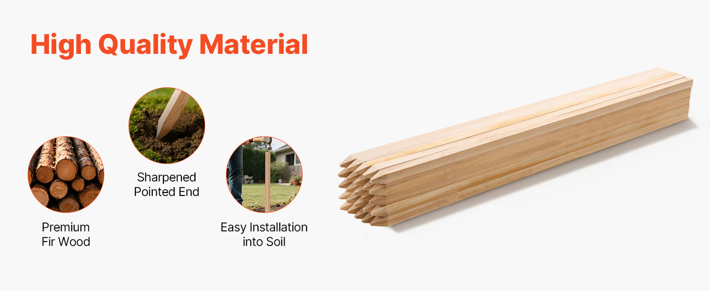 Okrem záhradkárstva sú tieto drevené meracie kolíky ideálne na rôzne použitia, napríklad na inštaláciu plotov, meracie projekty, smerové značky a na stavenisko.