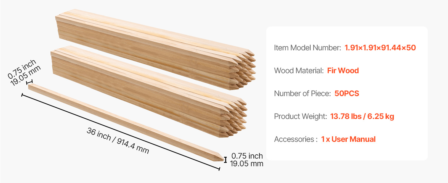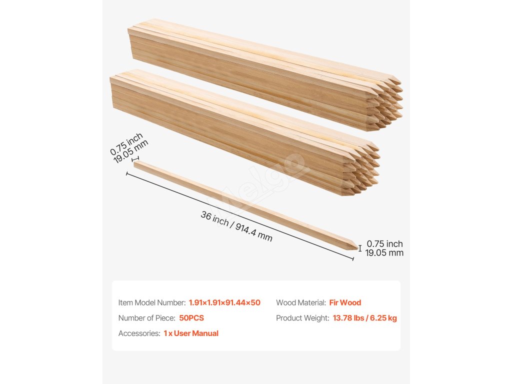 Drevené kolíky do záhrady, 50 ks, 19.05×19.05×914.4 mm, jedľové drevo