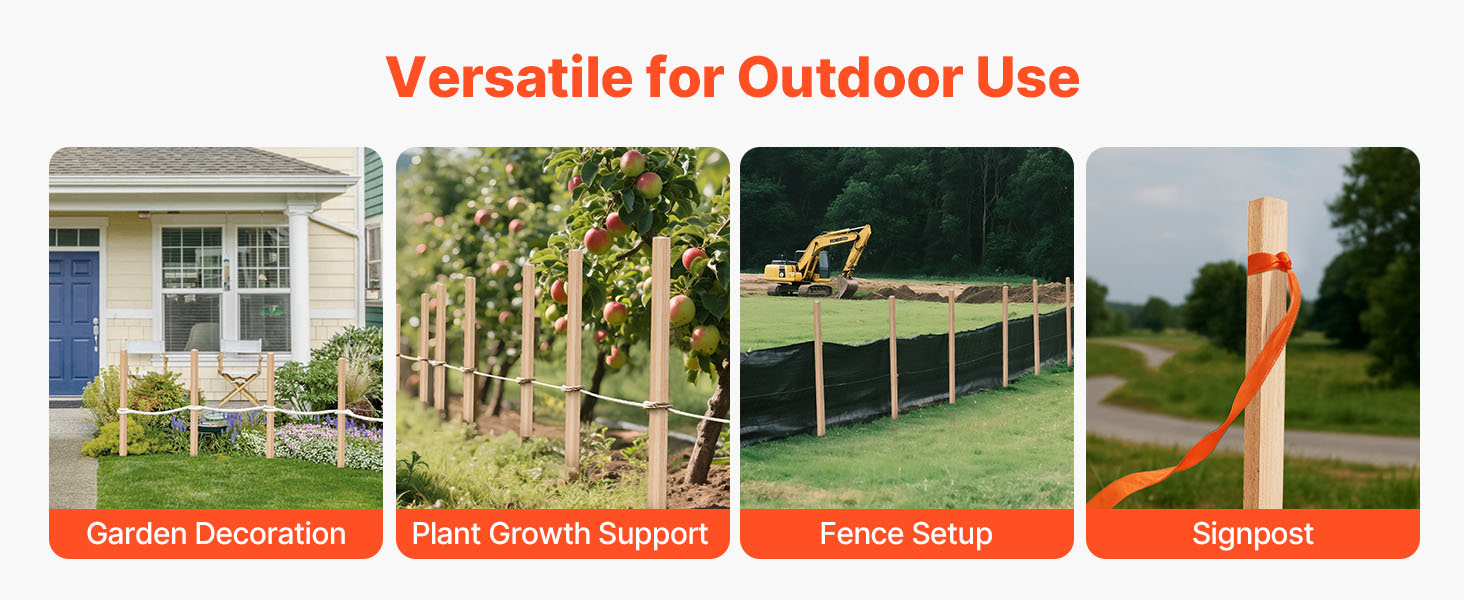 Okrem záhradkárstva sú tieto drevené meracie kolíky ideálne na rôzne použitia, napríklad na inštaláciu plotov, meracie projekty, smerové značky a na stavenisko.