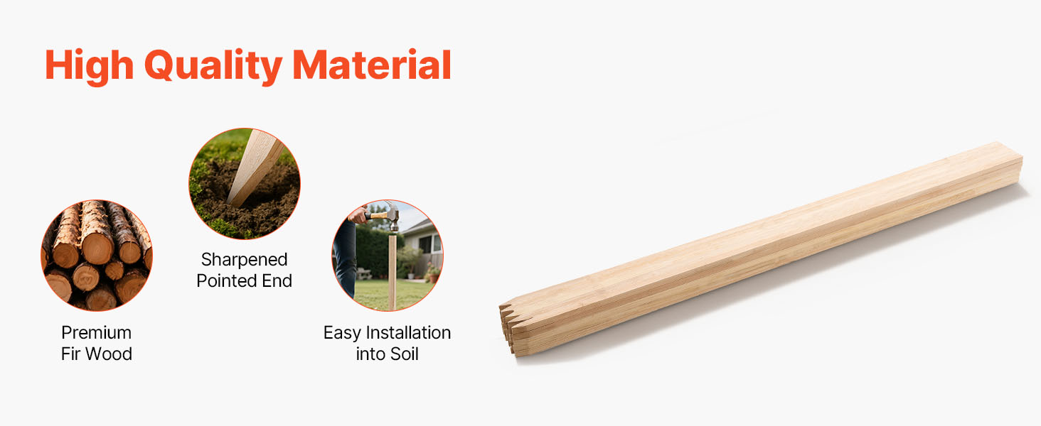 Okrem záhradkárstva sú tieto drevené meracie kolíky ideálne na rôzne použitia, napríklad na inštaláciu plotov, meracie projekty, smerové značky a na stavenisko.