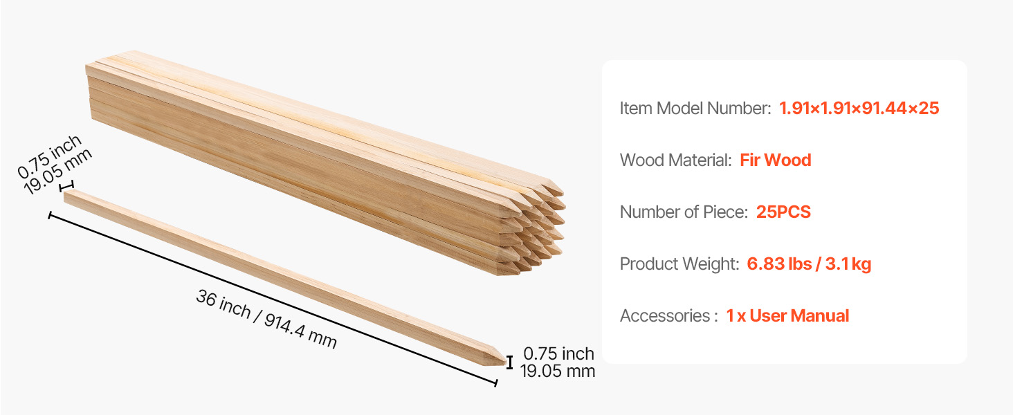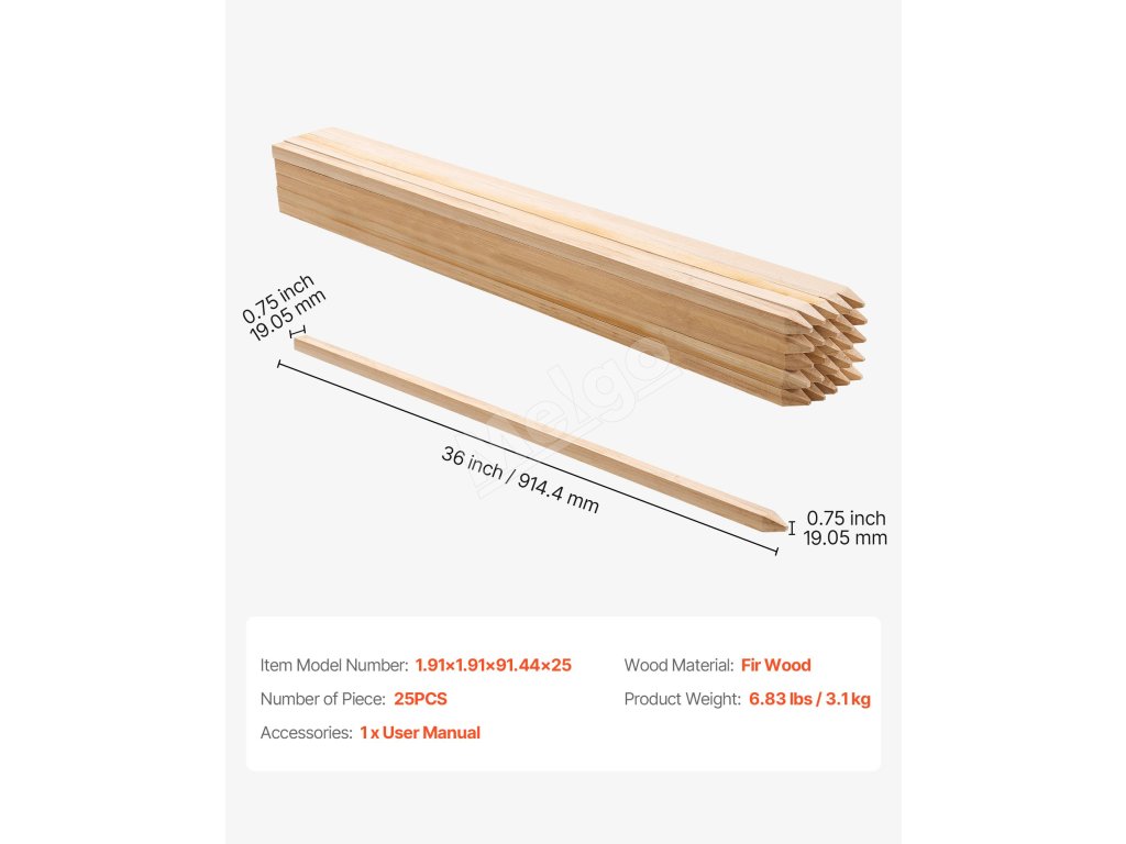 Drevené kolíky do zeme 25 ks 19.05×19.05×914.4 mm z jedľového dreva
