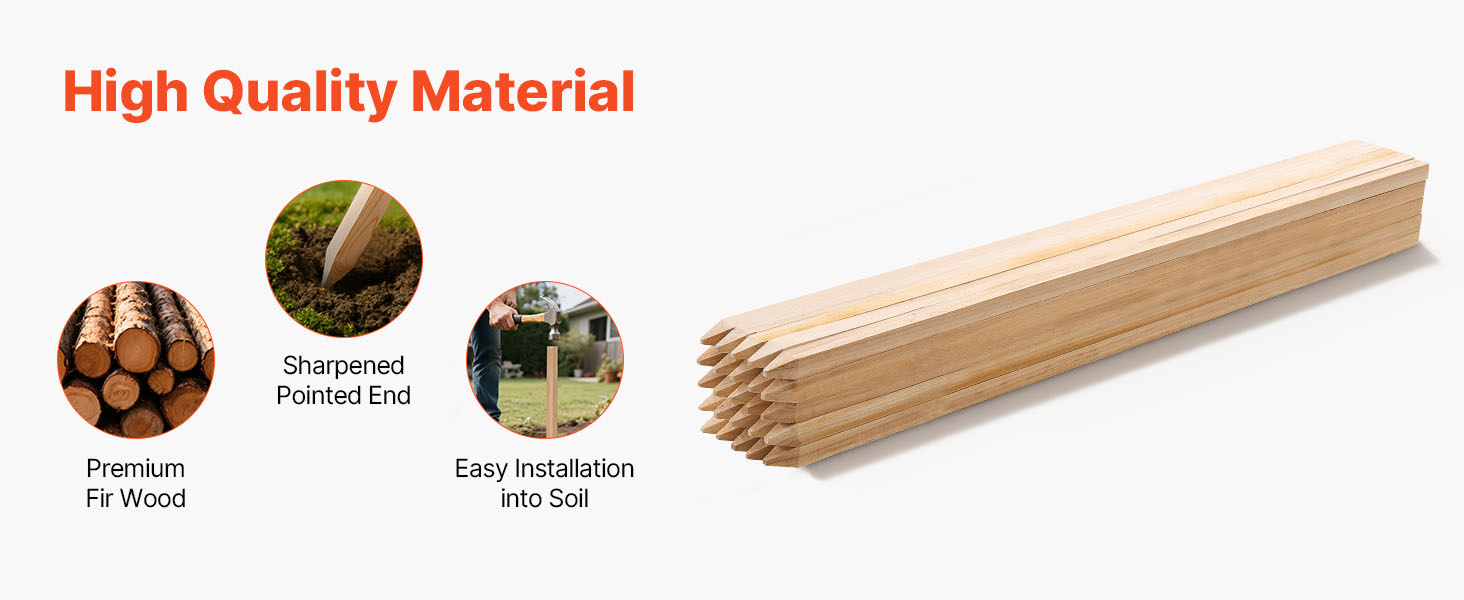 Okrem záhradkárstva sú tieto drevené meracie kolíky ideálne na rôzne použitia, napríklad na inštaláciu plotov, meracie projekty, smerové značky a na stavenisko.