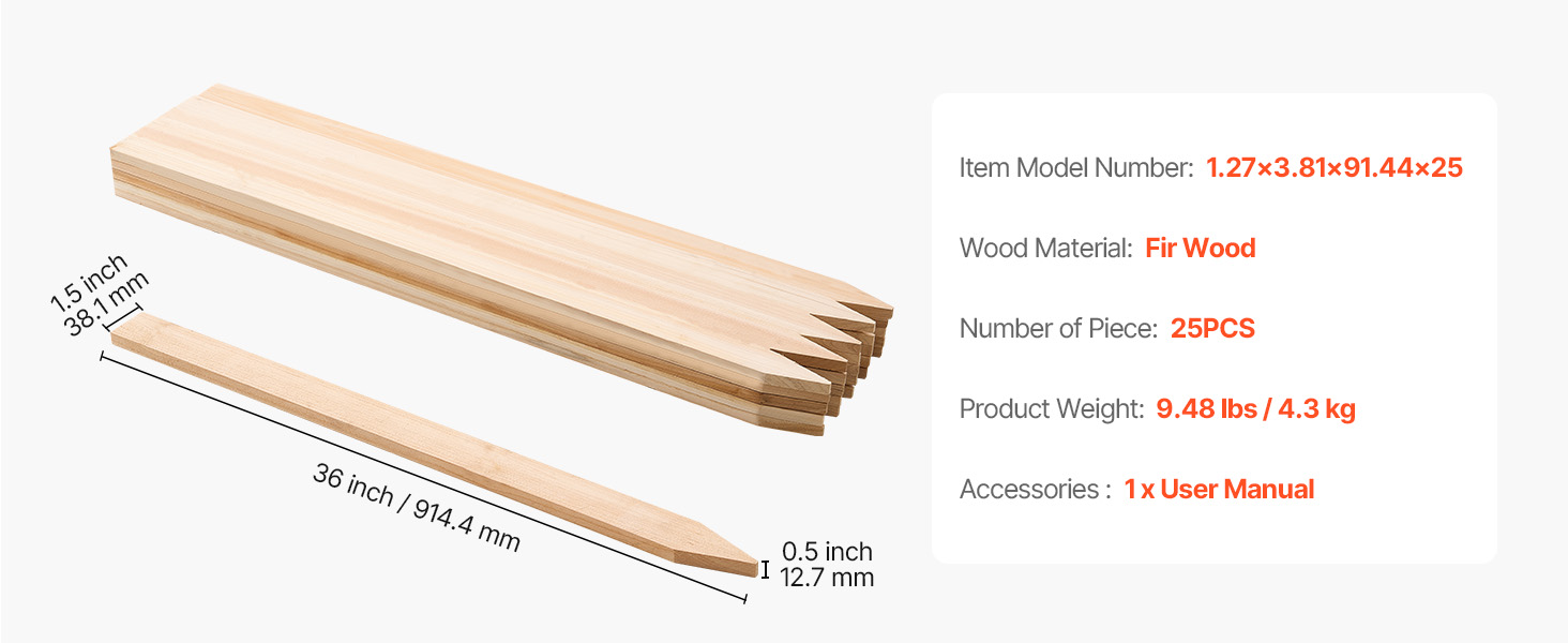 Drevené záhradné kolíky 25 ks 12.7×38.1×914.4 mm smrekové so špicom