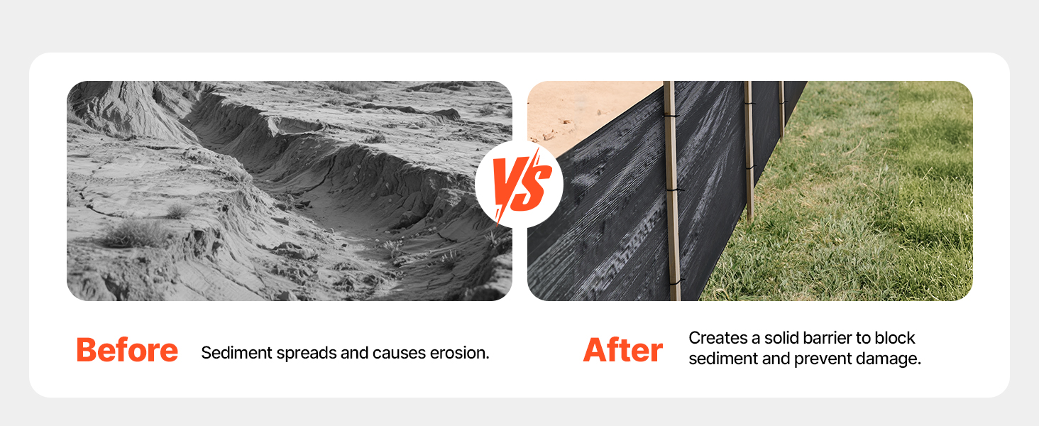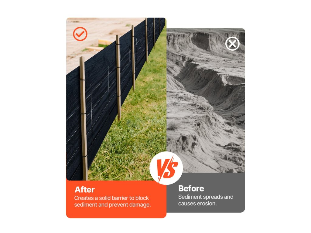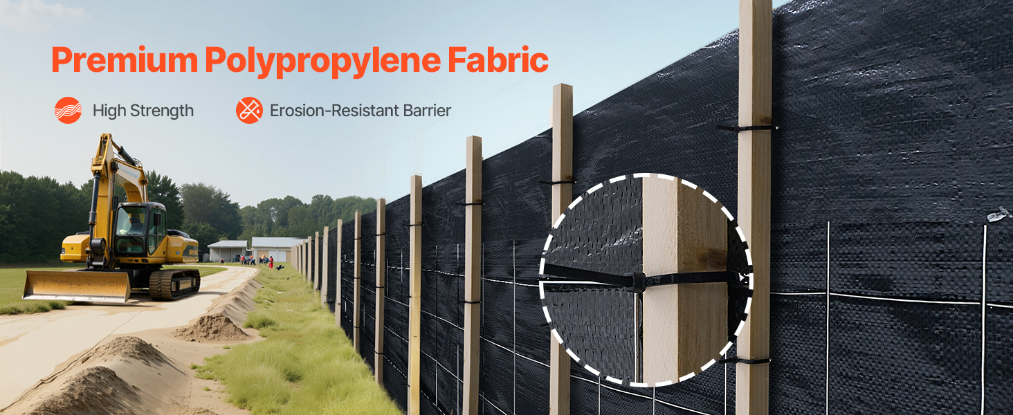 Vyrobené z tkaniny s vysokou hustotou v kombinácii s robustným drôtom na lepšie zachytenie. Odolná voči prepichnutiu a poškodeniu, rolka bahenného plotu je navrhnutá tak, aby odolala náročným poveternostným podmienkam a podmienkam na stavbe.