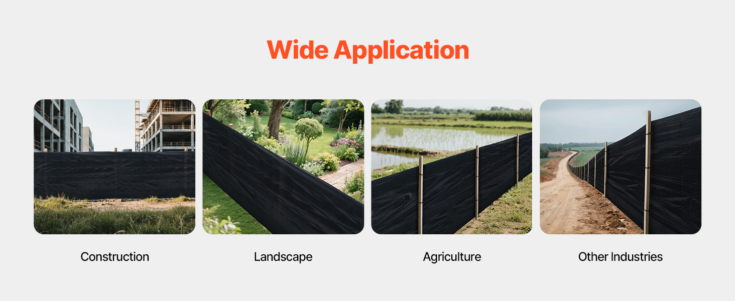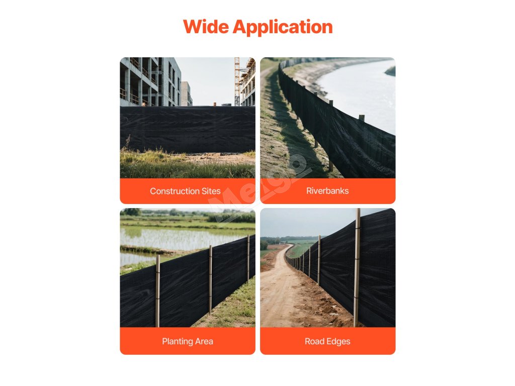 Oplotenie proti bahnu je ideálne na staveniská, práce na cestách, záhradné zábrany, ochranu fariem a ďalšie účely, na kontrolu sedimentov a oplotenie v rôznych prostrediach.
