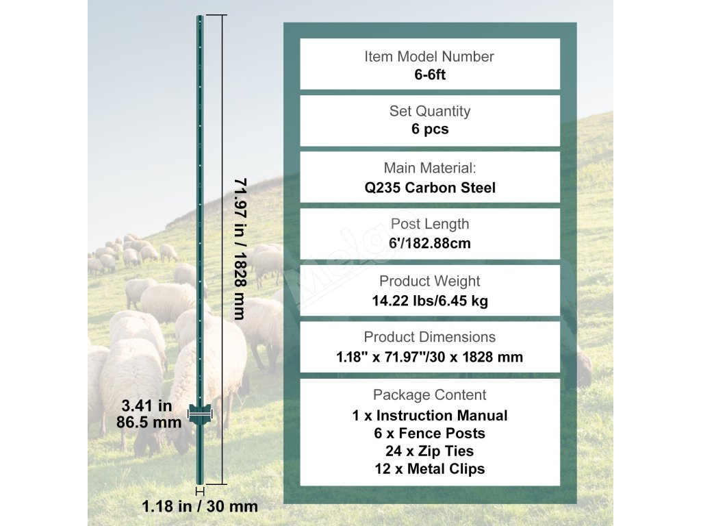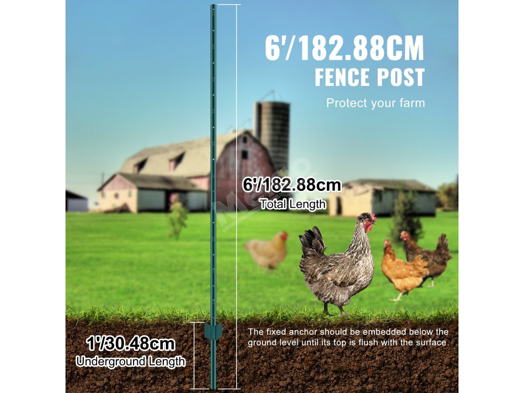 Plotové stĺpiky u-profil 6 feet, balenie 6 ks, oceľné, zelené