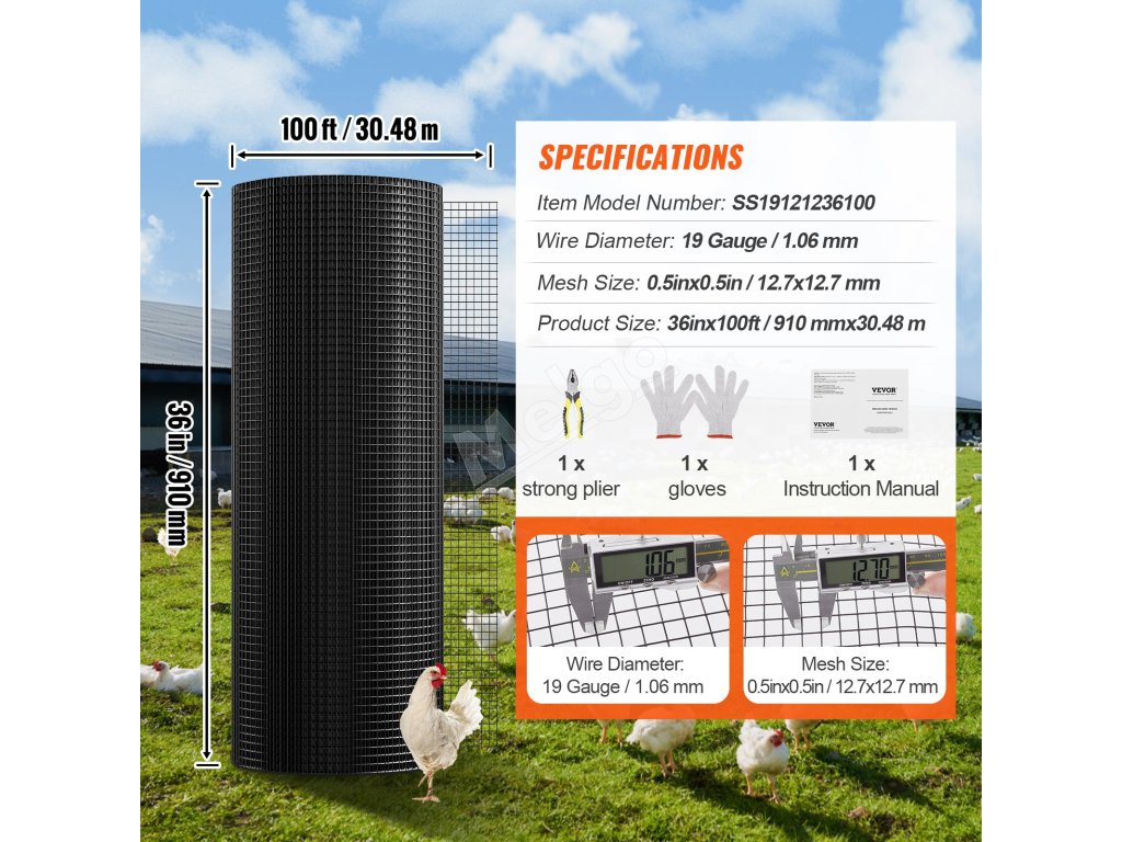 Táto rolka plotu z drôtu pre kurčatá je pevná a pružná. Na strihanie a inštaláciu použite priložené rukavice a silné kliešte. Podporuje prispôsobenie na rôzne aplikácie.