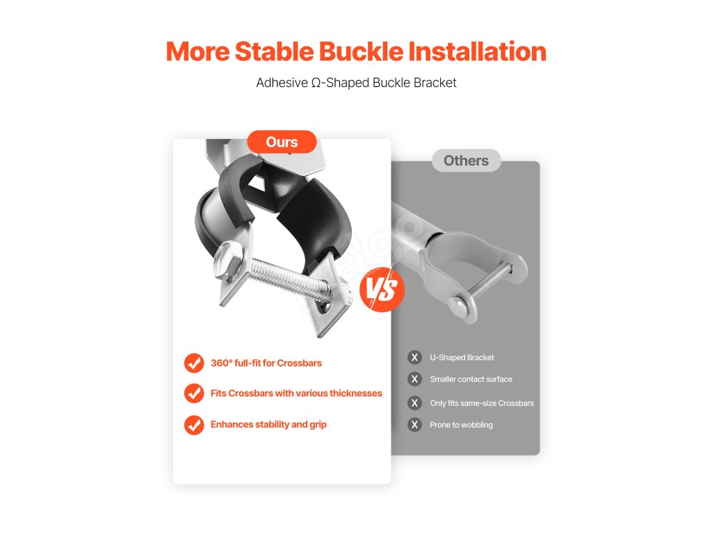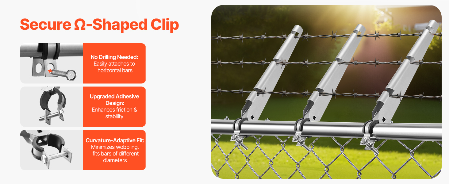 V porovnaní so štandardnými U-konzolami sa zdokonalený dizajn Ω hodí na rôzne priemery hornej lišty (1,3"-1,5") a pevne obopína krivku lišty. Pridaný lepiaci podklad zvyšuje priľnavosť a stabilitu, čím znižuje kolísanie vo vonkajších podmienkach.