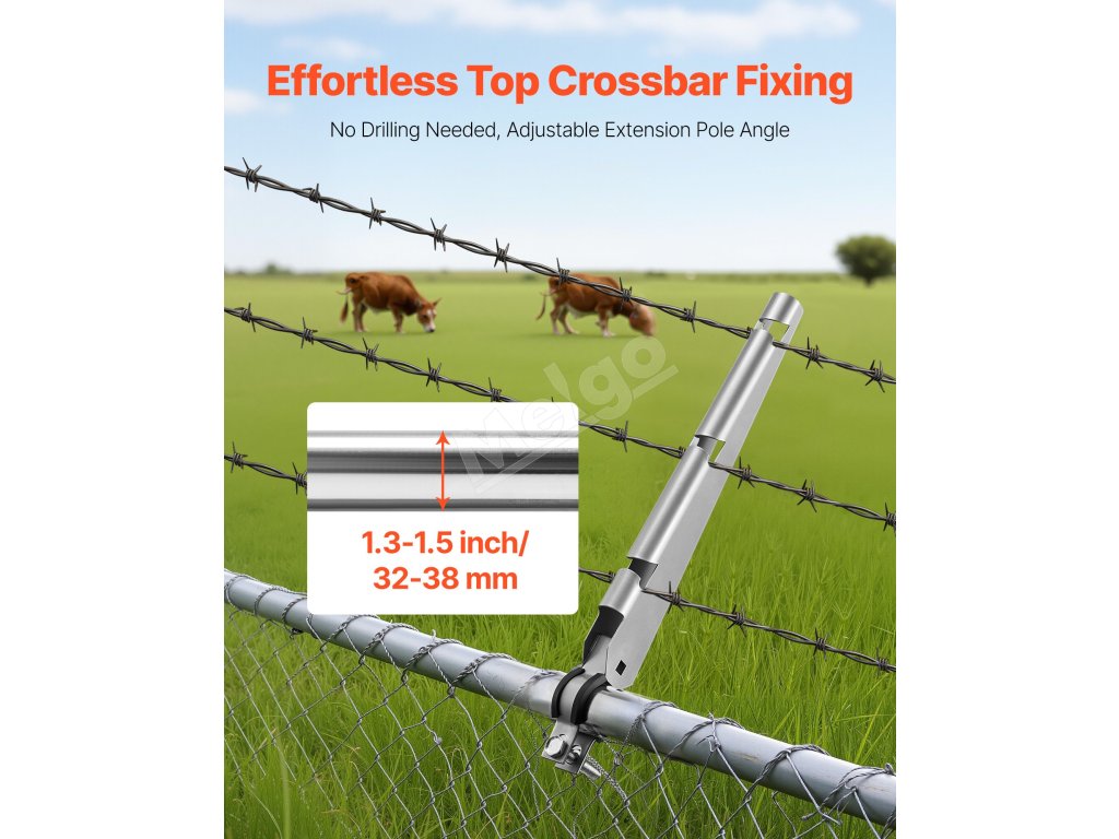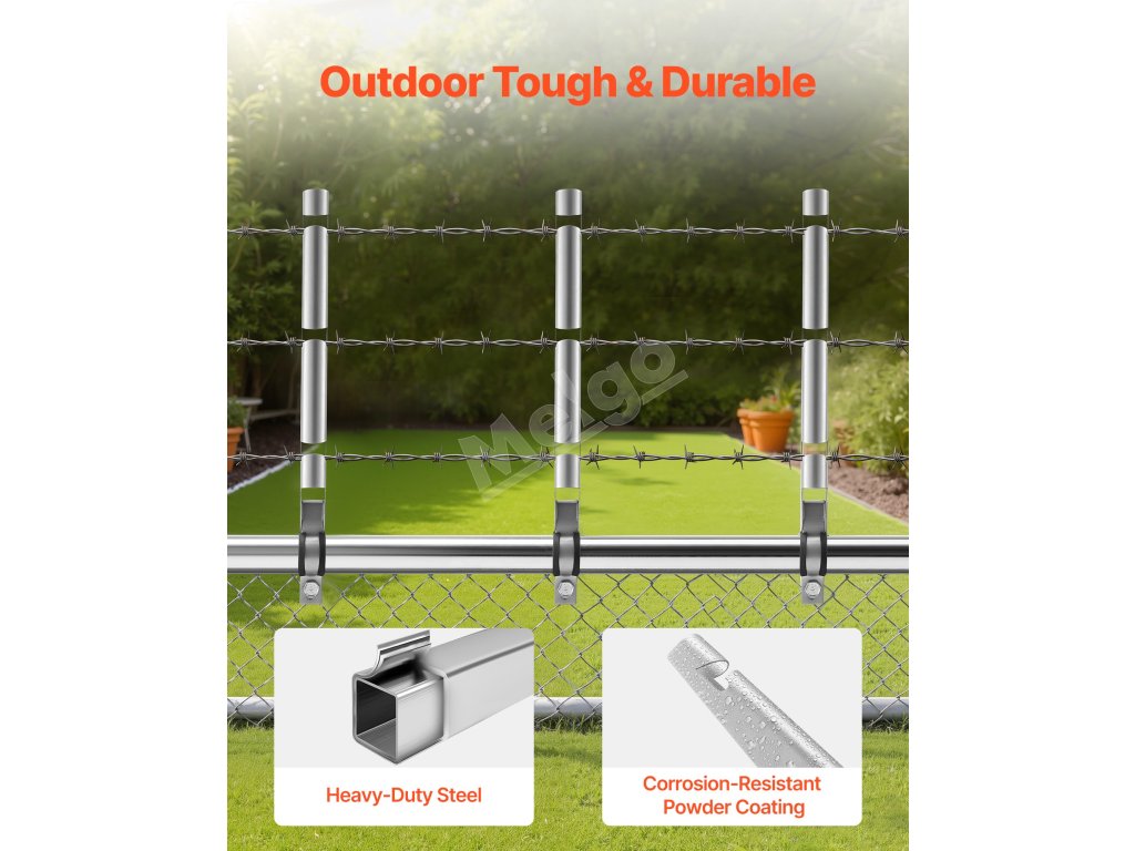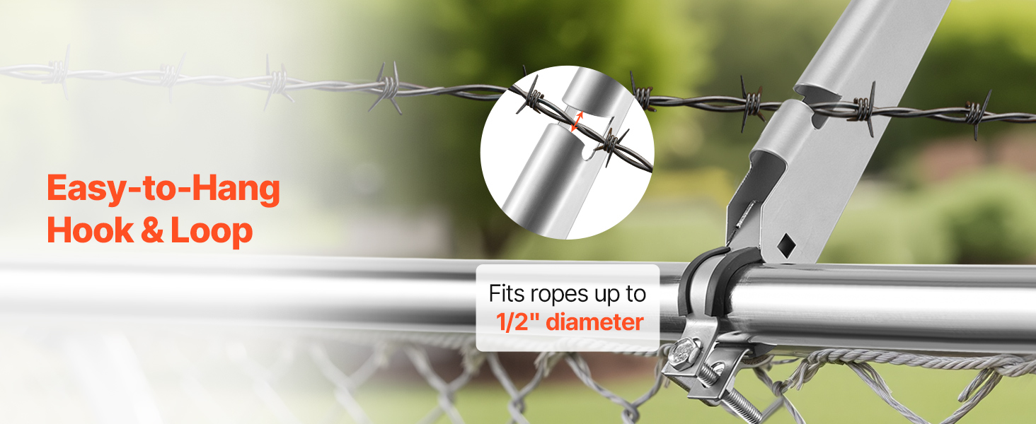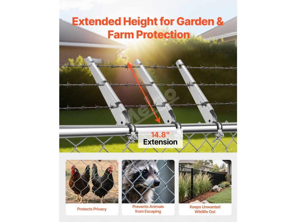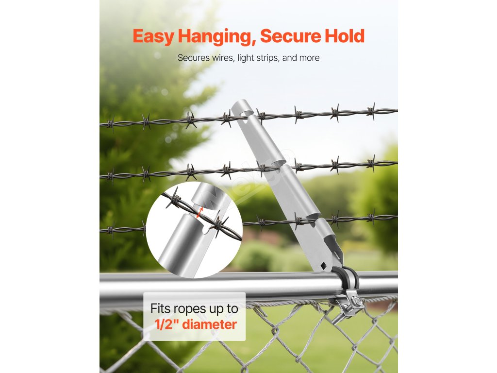 Každá tyč na predĺženie reťazového plota obsahuje zabudované háčikové krúžky na upevnenie drôtu, pletiva alebo svetiel. Drážkovaný dizajn umožňuje rýchlejšie a jednoduchšie nastavenie a odstránenie, čím sa zvyšuje funkčnosť aj bezpečnosť.