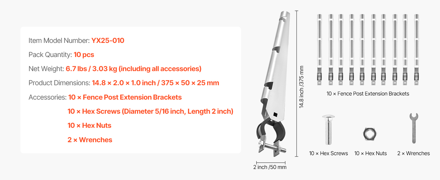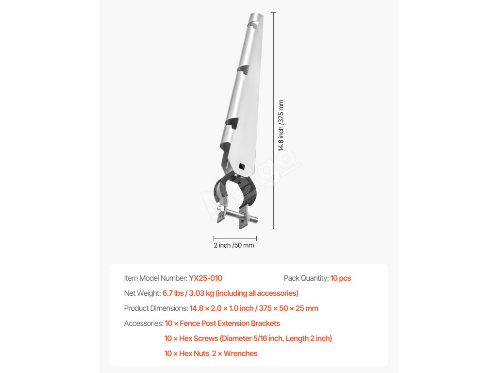 Tieto predlžovače stĺpikov plota zvyšujú výšku vašej záhrady, trávnika alebo ohrady pre domáce zvieratá - ideálne na zvýšenie súkromia a zabránenie skákania alebo úniku domácich zvierat. Sú vyrobené z odolnej ocele s práškovým náterom a sú konštruované tak, aby vydržali vonku. Dodáva sa so všetkým montážnym príslušenstvom na rýchle nastavenie.