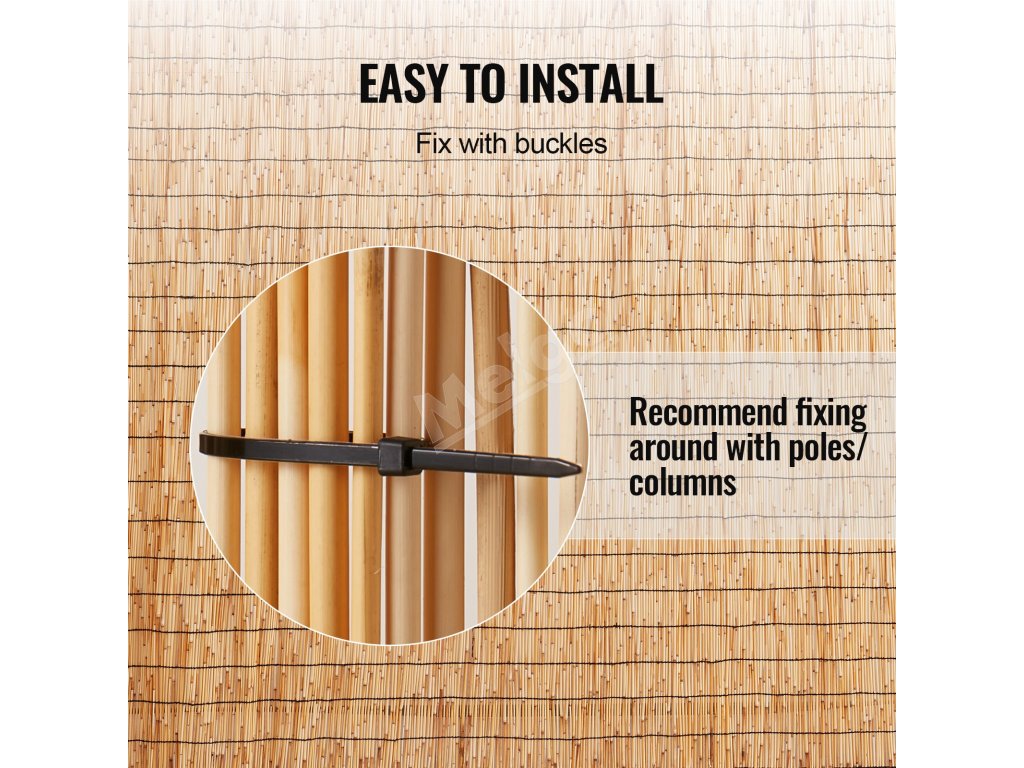 Inštalácia našej trstinovej zásteny na ochranu súkromia je hračka. Nie sú potrebné žiadne kladivá ani náradie - stačí použiť priložené zipsy a všetko je pripravené!