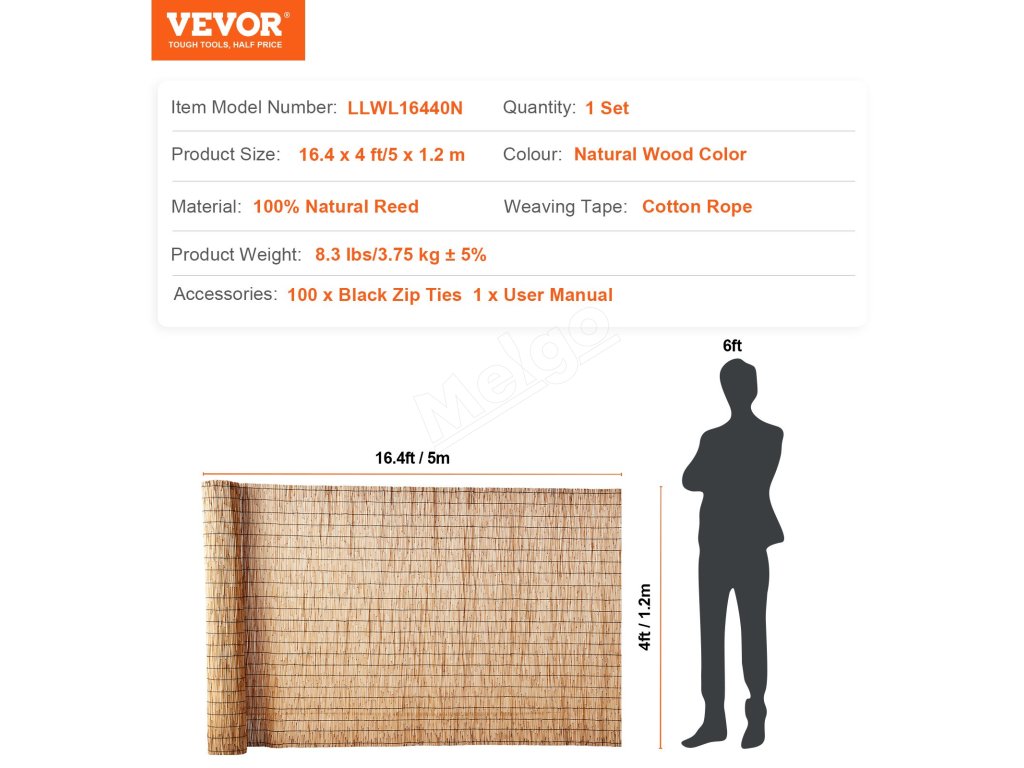 Trstinový plot v rolke 4 ft × 16.4 ft, prírodná trstina záhradný panel