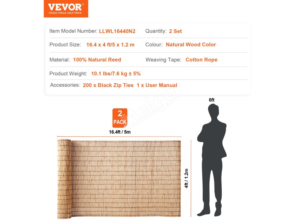 Trstinový plotový panel 2 ks 4 ft×16.4 ft na balkón a záhradu