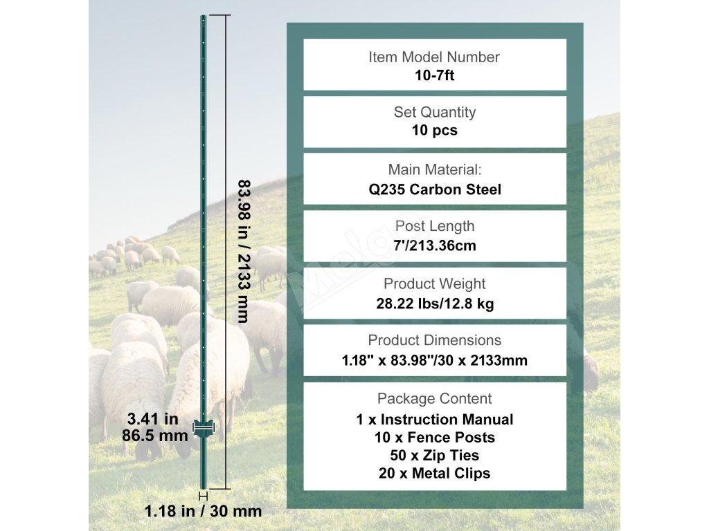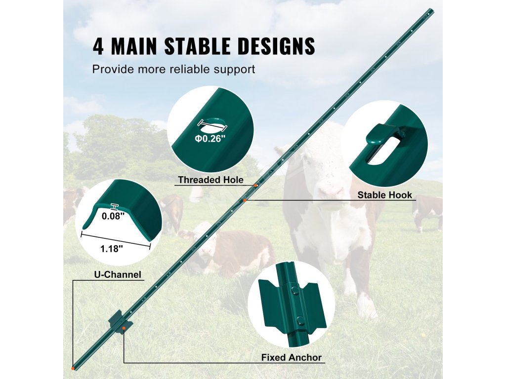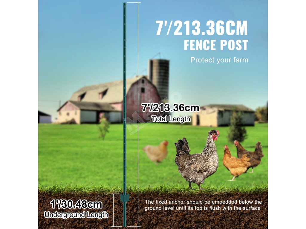 U-profilové plotové stĺpy 7 feet, 10 ks, oceľové, zelené pre oplotenie