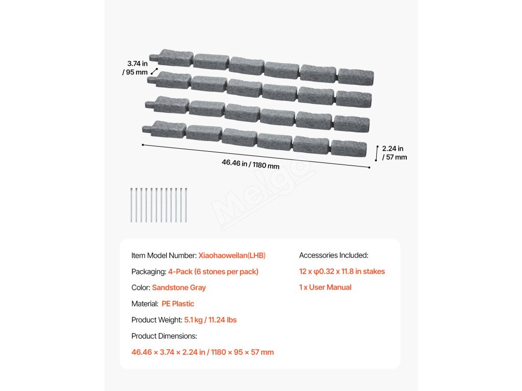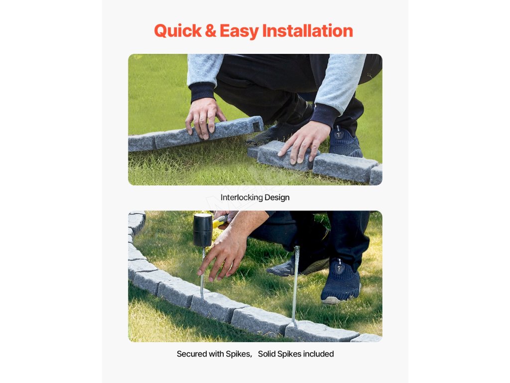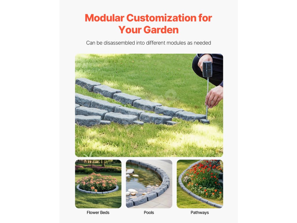 Tento kamenný krajinný lem má realistickú kamennú štruktúru, ktorá bez námahy zvýrazní vizuálnu príťažlivosť vašej záhrady, bazéna, chodníkov. Modulárna konštrukcia umožňuje rýchlu inštaláciu. Toto lemovanie trávnika je vyrobené z kvalitného PE, je odolné voči vyblednutiu, hrdzi, ľahké a má dlhú životnosť.