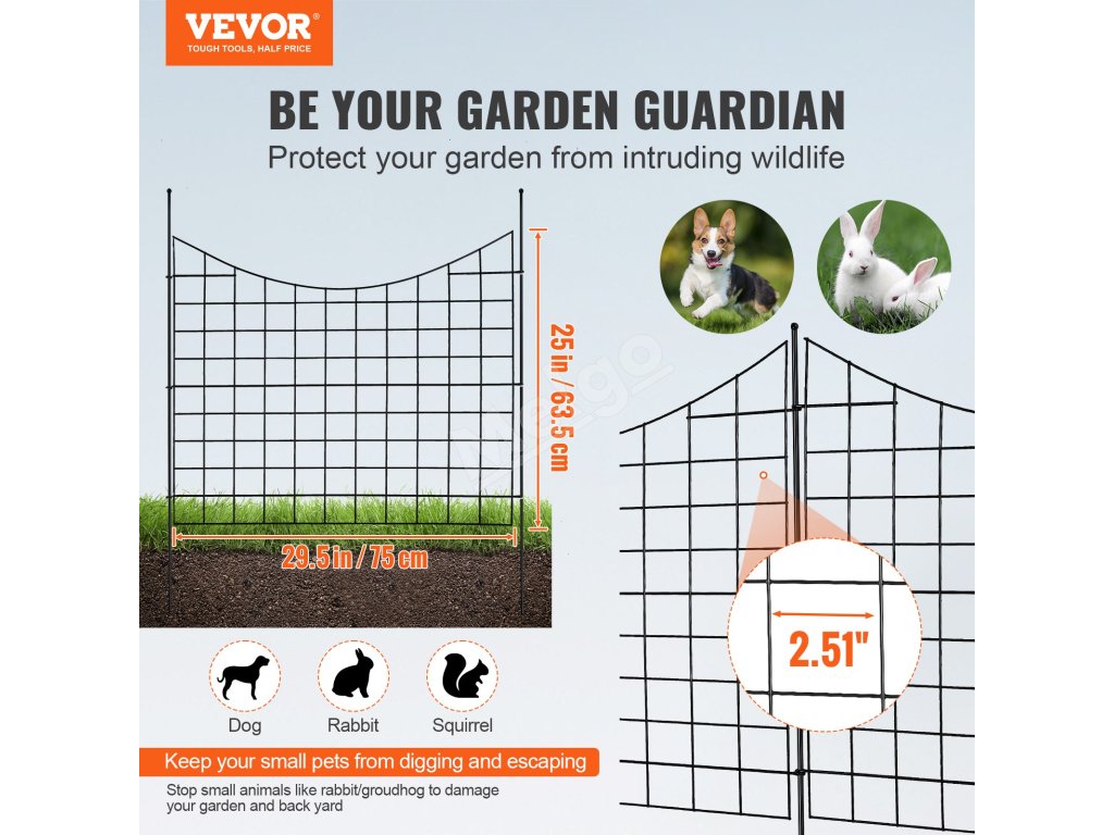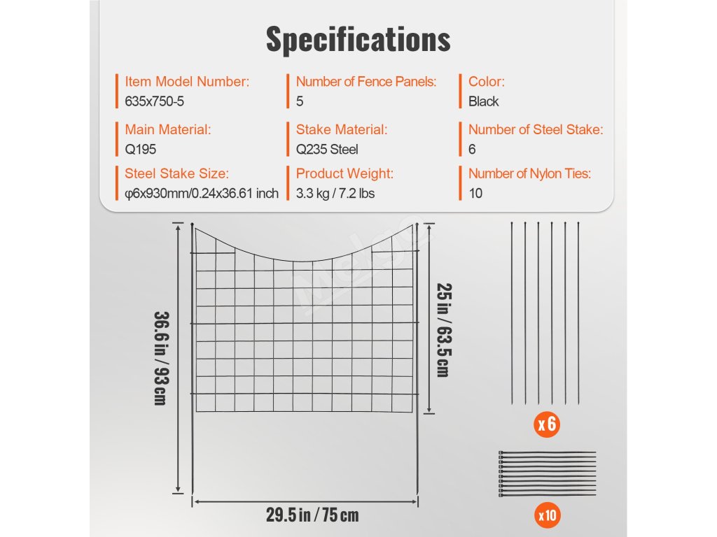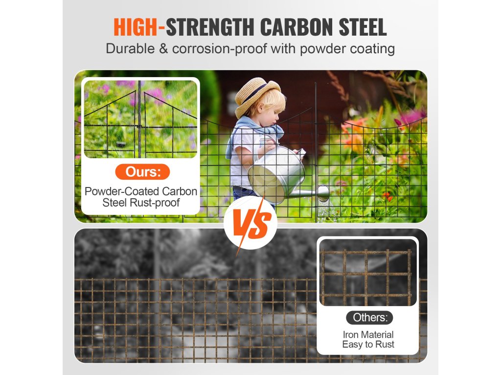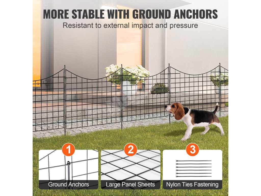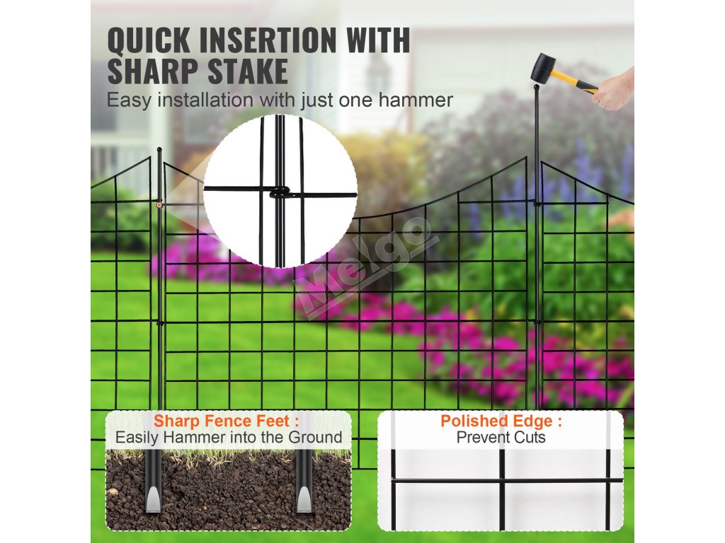 Záhradný kovový plot 92.96×74.93 cm, rozostup kolíkov 16 cm, 5 ks