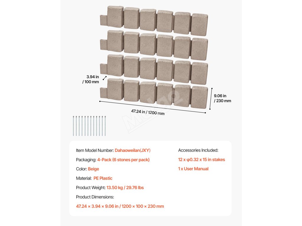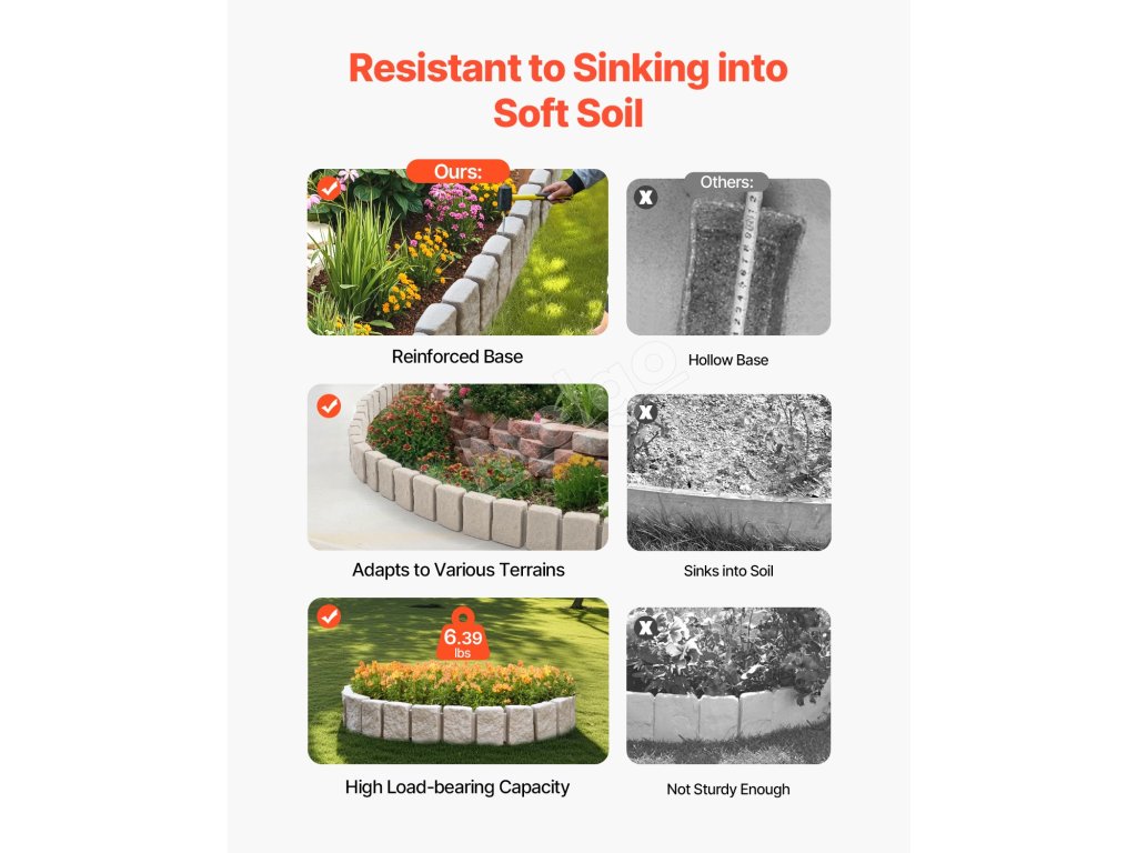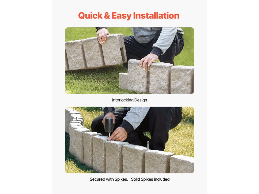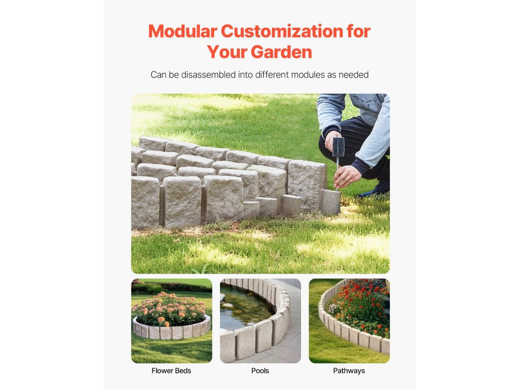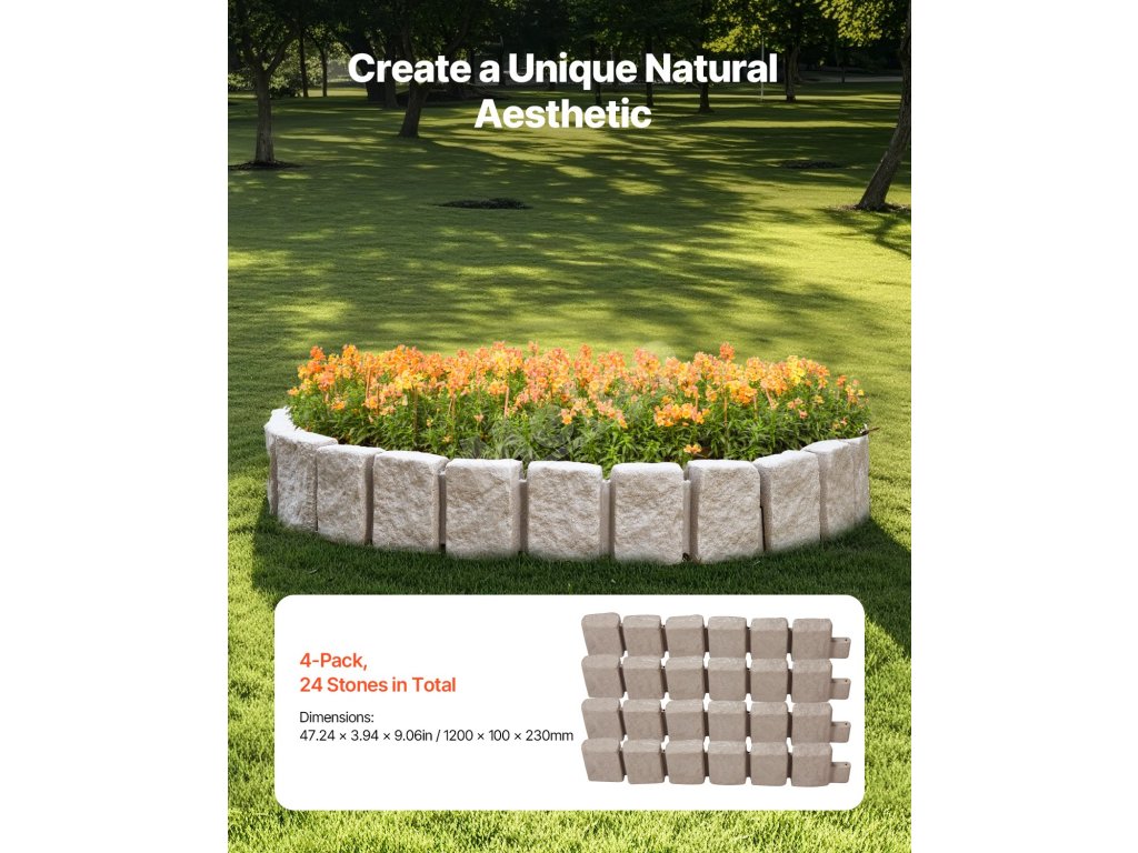 Tento kamenný krajinný lem má realistickú kamennú štruktúru, ktorá bez námahy zvýrazní vizuálnu príťažlivosť vašej záhrady, bazéna, chodníkov. Modulárna konštrukcia umožňuje rýchlu inštaláciu. Toto lemovanie trávnika je vyrobené z kvalitného PE, je odolné voči vyblednutiu, hrdzi, ľahké a má dlhú životnosť.