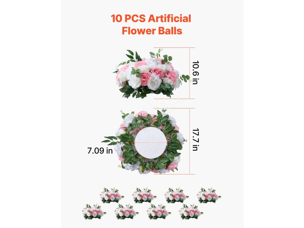 Umelé kvetinové gule 10 ks, priemer 450 mm, ružovo-biele ruže