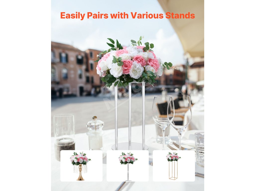 Odpoveď 1: Naše kytice sa hodia na väčšinu svadobných stojanov, oblúkov a centrálnych dekorácií. Pred nákupom si pozrite tabuľku veľkostí. Ak používate vlastný rám, uistite sa, že veľkosť základne zodpovedá otvoru v spodnej časti kytice.