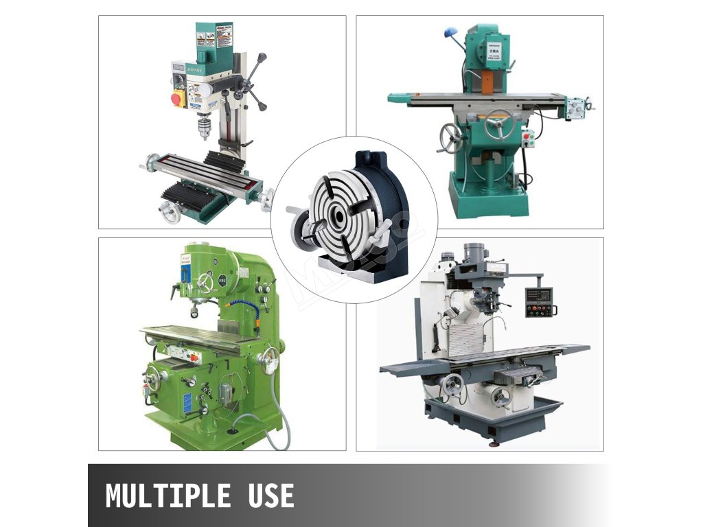 Široké využitie pri obrábaní kovov, umožňuje obsluhe vŕtať alebo rezať obrobky v presných intervaloch okolo pevnej osi. Skvelé na kruhové rezacie práce, vyvrtávanie, bodové obrábanie a podobné práce.