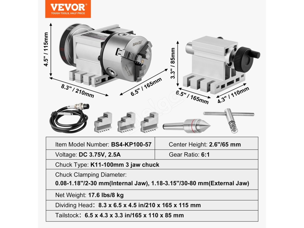 | Priemer upínania skľučovadla | 0.08-1,18''/2-30 mm (vnútorné čeľuste), 1,18-3,15''/30-80 mm (vonkajšie čeľuste) |