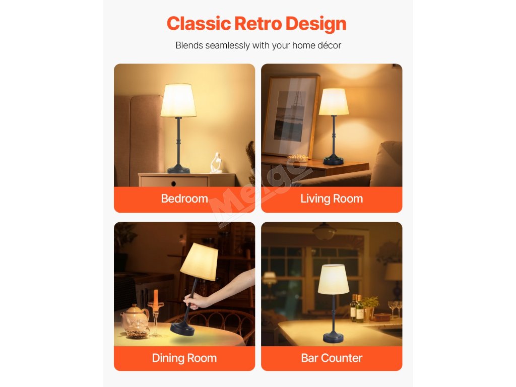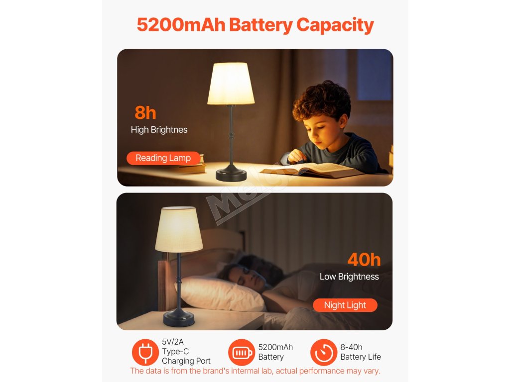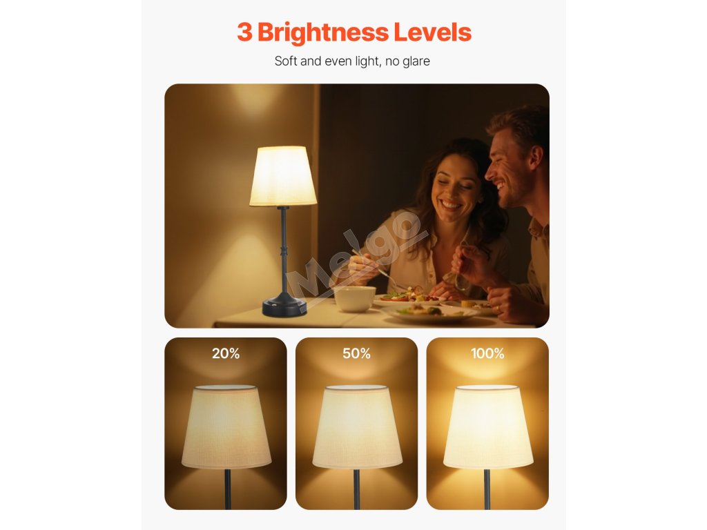 Táto bezdrôtová stolová lampa zaručuje dlhotrvajúci výkon pre všetky vaše potreby osvetlenia. Poskytuje stabilný zdroj svetla, či už čítate, pracujete alebo si užívate vonkajšie aktivity. Vďaka trom nastaviteľným stupňom jasu môžete ľahko prepínať z jemnej atmosféry na jasné svetlo na čítanie.
