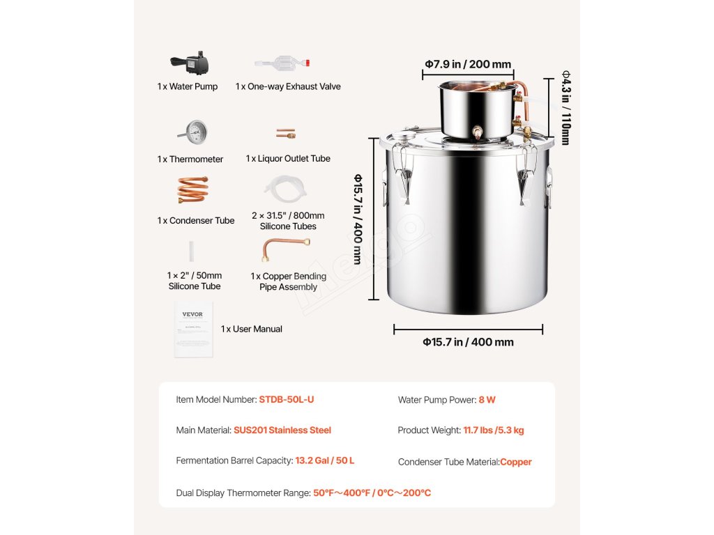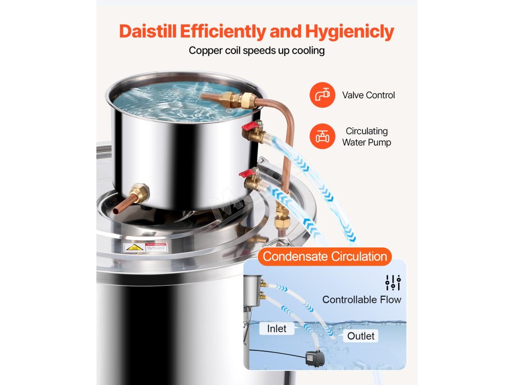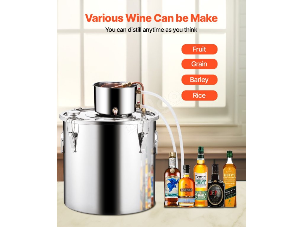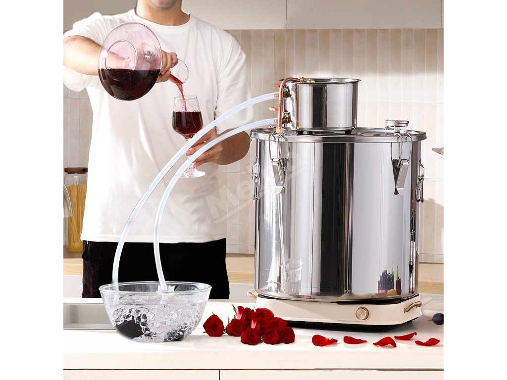 Úprimnosť a remeselná zručnosť žiaria! Tento destilačný prístroj je ideálny pre začiatočníkov na varenie a domácu výrobu ovocných vín, rumu, vodky, destilovanej vody a iných destilovaných produktov.