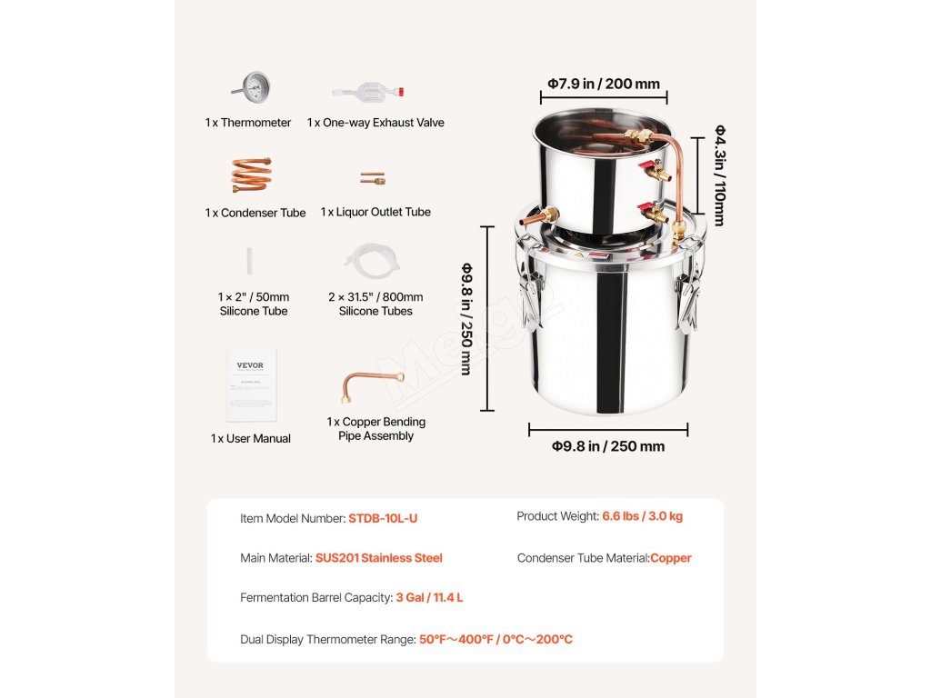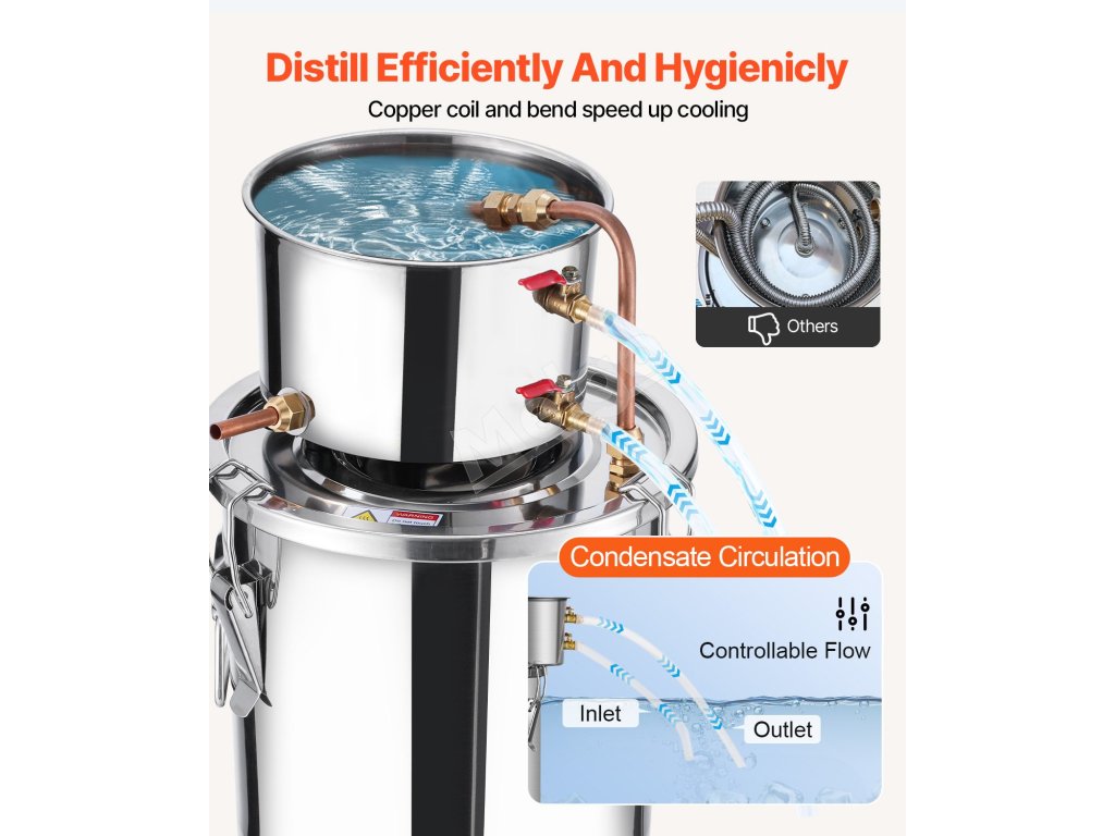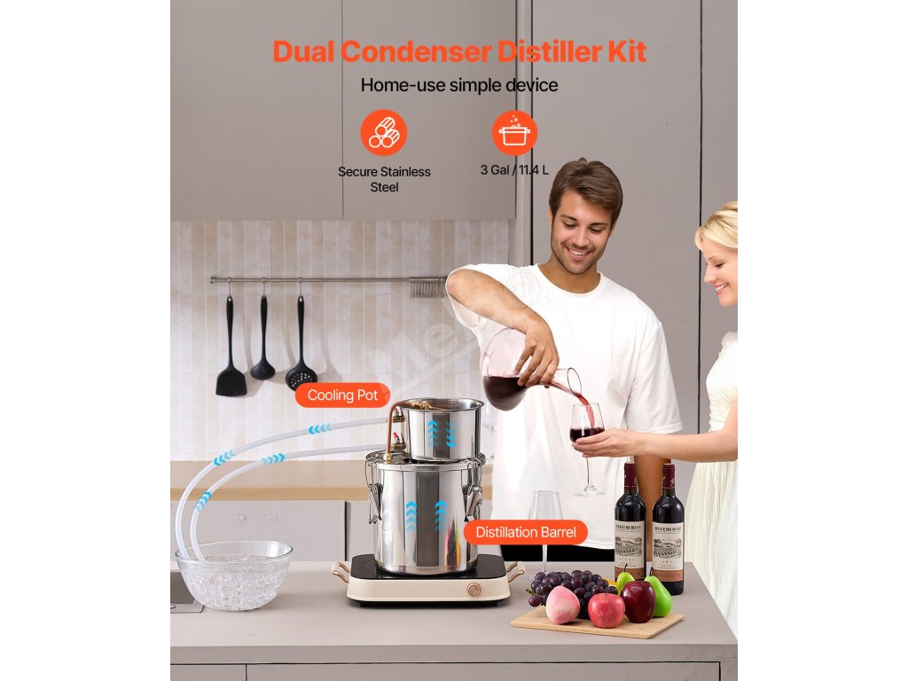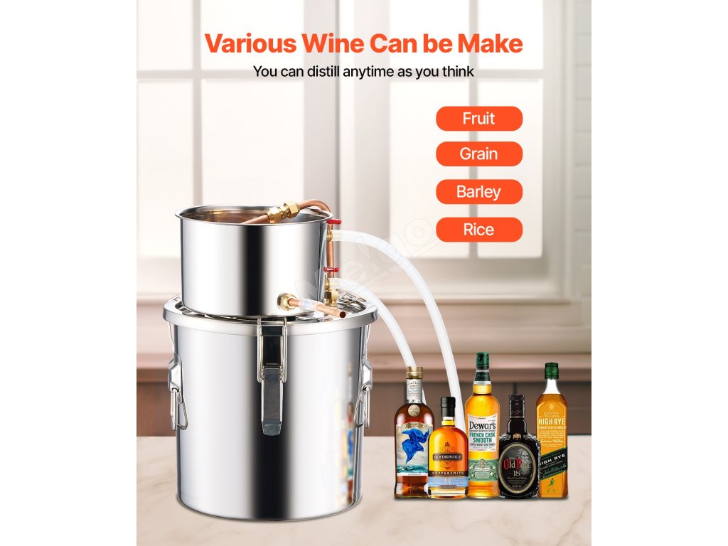 Úprimnosť a remeselná zručnosť žiaria! Tento destilačný prístroj je ideálny pre začiatočníkov na varenie a výrobu ovocných vín, rumu, vodky, destilovanej vody a iných destilovaných produktov v domácnosti.