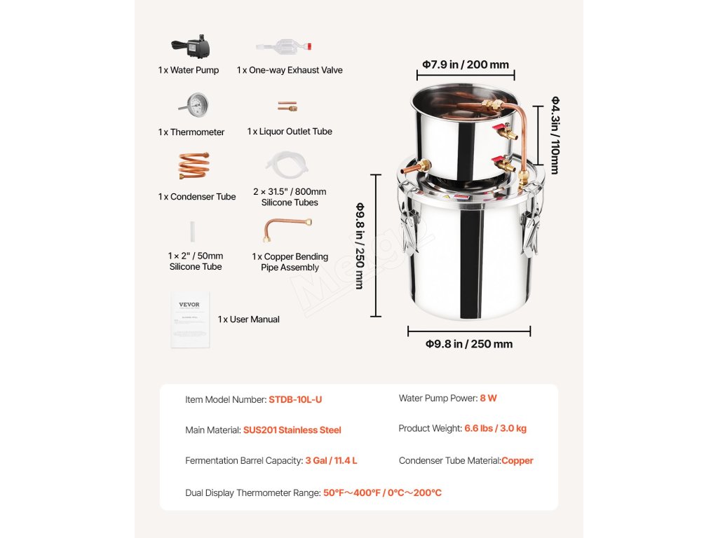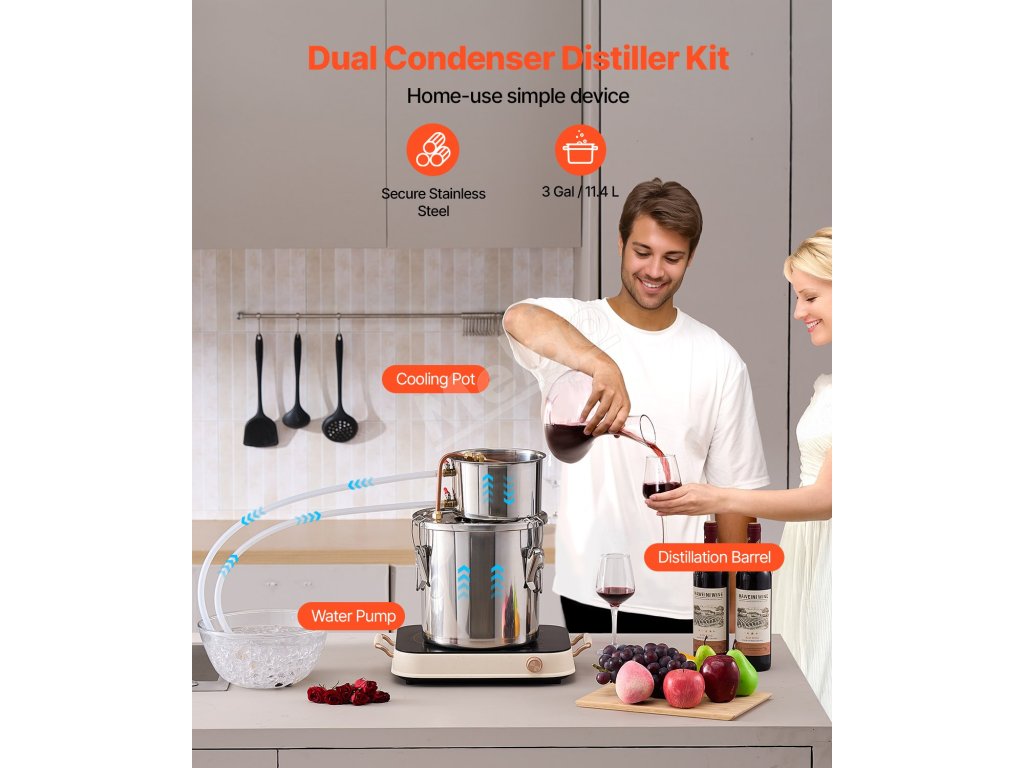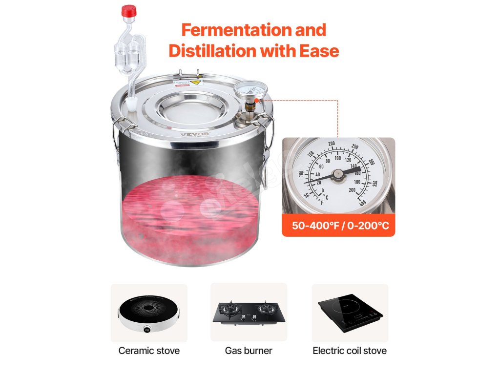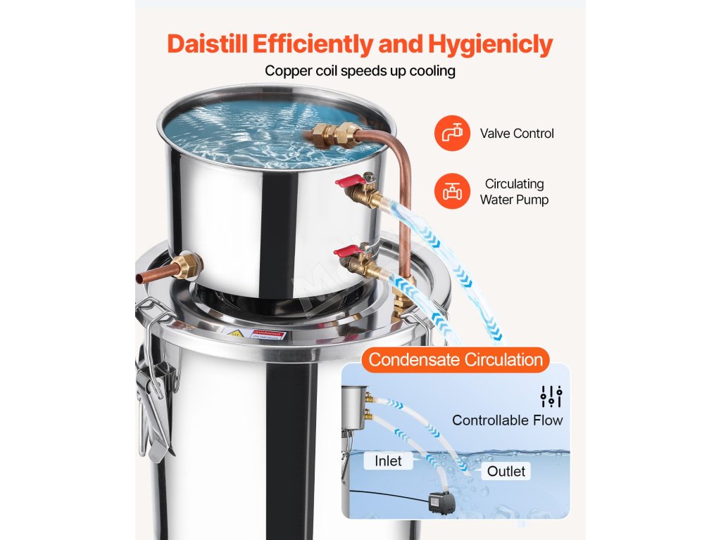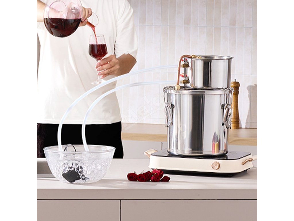 Úprimnosť a remeselná zručnosť žiaria! Tento destilačný prístroj je ideálny pre začiatočníkov na varenie a domácu výrobu ovocných vín, rumu, vodky, destilovanej vody a iných destilovaných produktov.