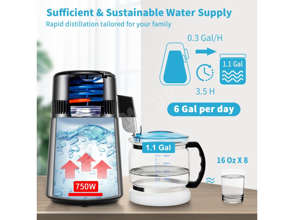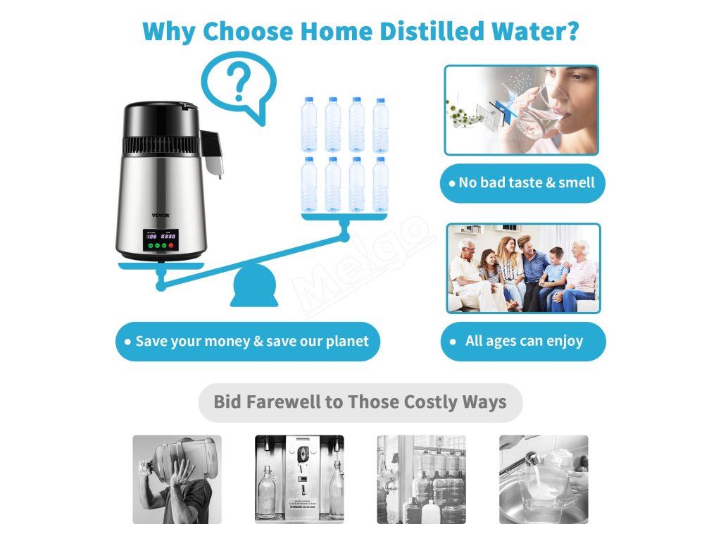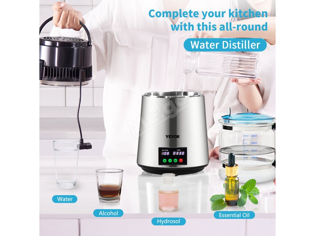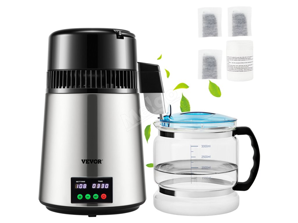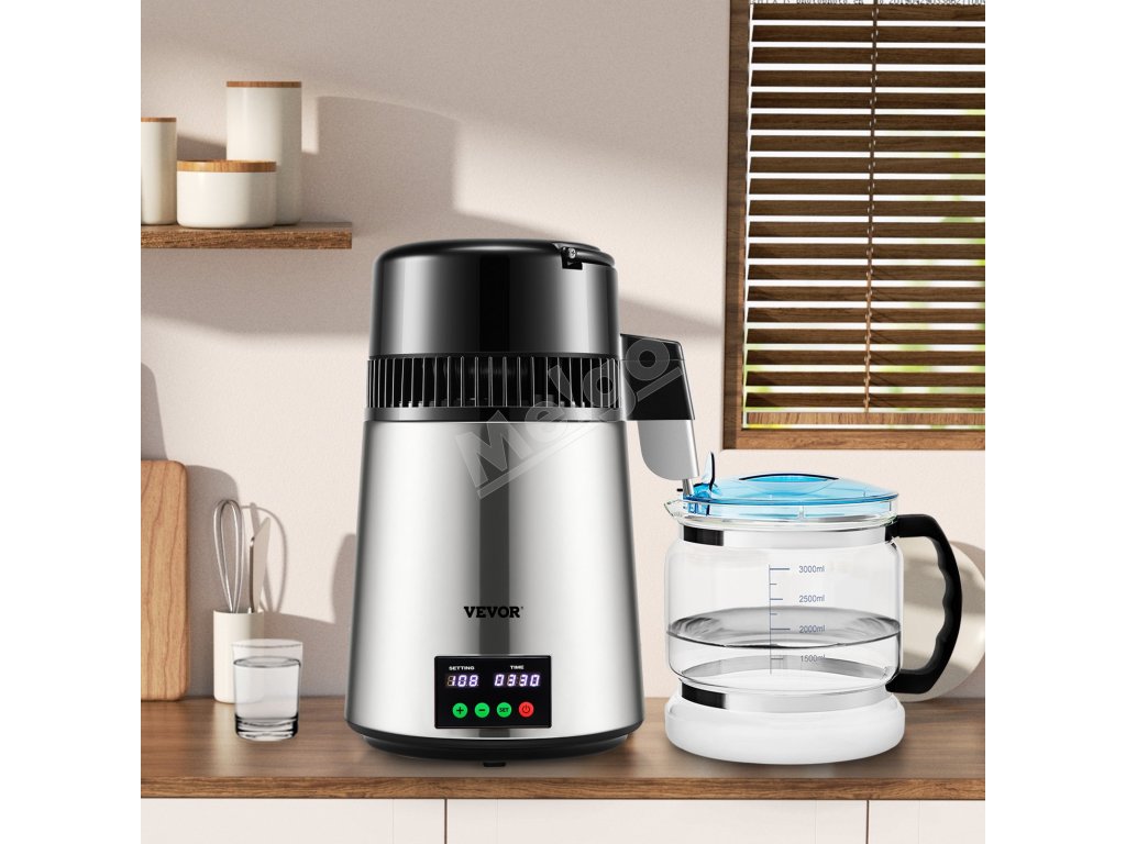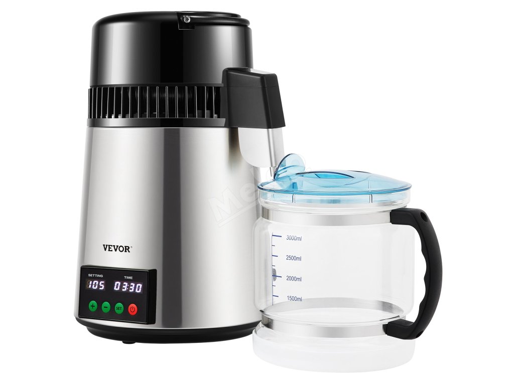 Destilátor vody 4L, 1L/h, časovač a teplotný displej, strieborný