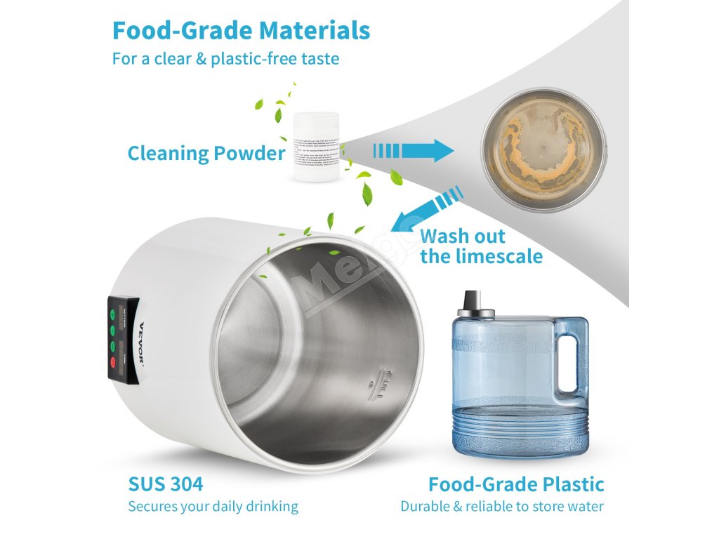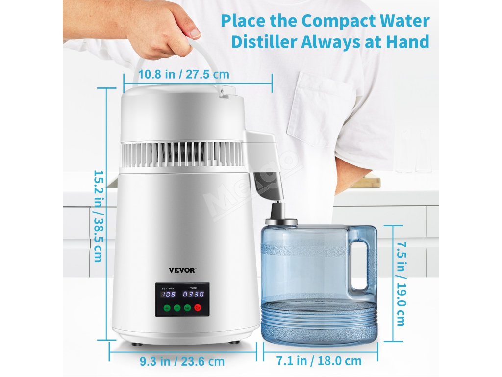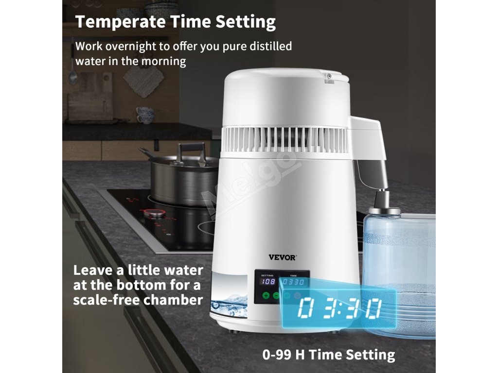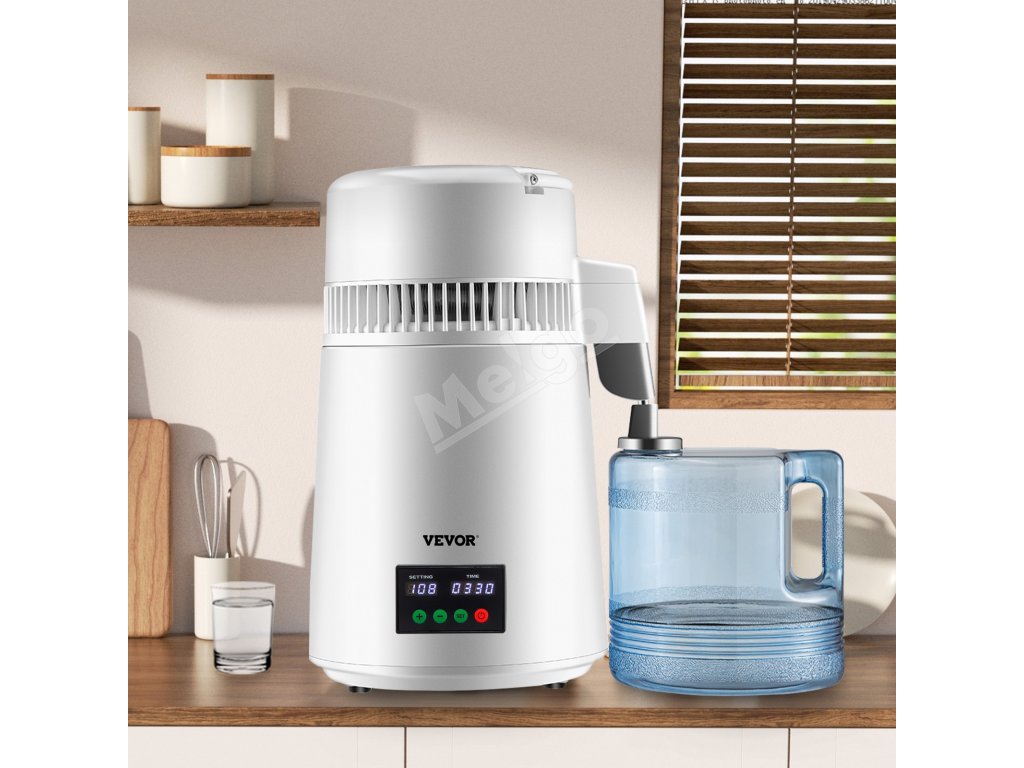 Destilátor vody 4L, 1L/h, stolný, časovač a teplotný displej, biely