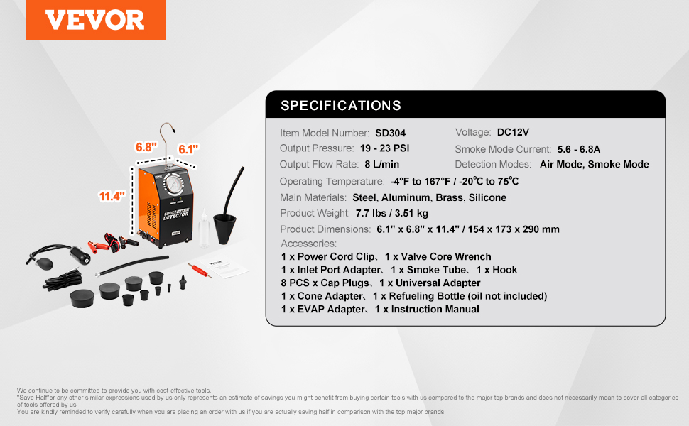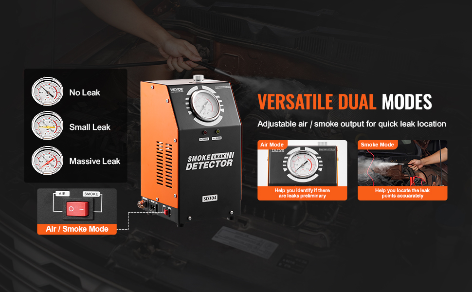 Automobilový dymostroj VEVOR je dokonalým spoločníkom na testovanie tesnosti! Či už ide o systém EVAP, systém palivovej nádrže, výfukový a sací systém, test tesnenia vozidla, tento stroj zvládne všetko. Ideálny pre automobily, motocykle, snežné skútre, štvorkolky, ľahké nákladné vozidlá - s ľahkosťou pokrýva diagnostické potreby.