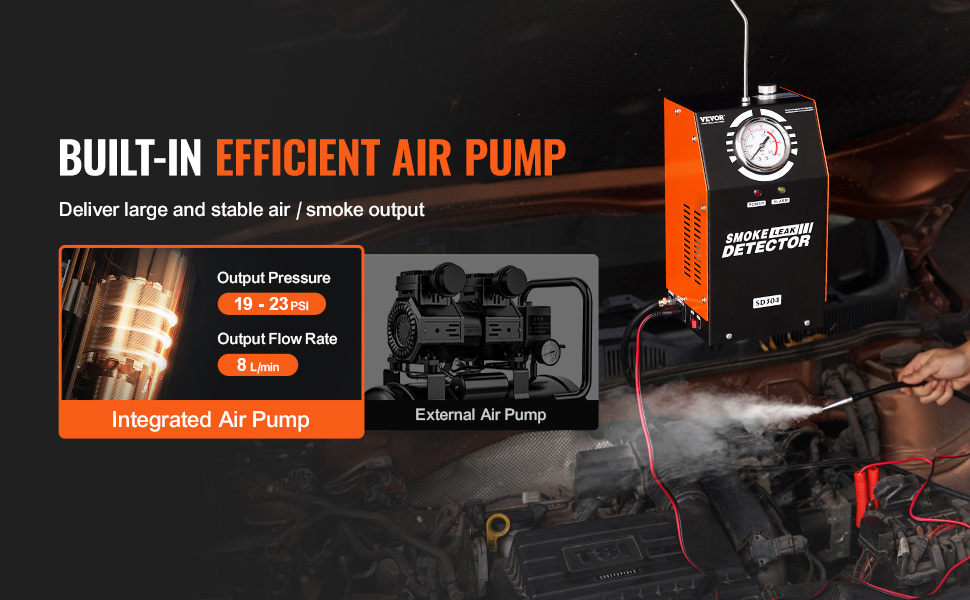 Náš dymostroj na testovanie tesnosti je vybavený zabudovaným vzduchovým čerpadlom, ktoré zabezpečuje efektívnu a bezproblémovú prevádzku. Toto zabudované čerpadlo zefektívňuje diagnostický proces, umožňuje vám premiestňovať a používať dymový tester kdekoľvek, nie je potrebné kupovať ďalšie vzduchové čerpadlo.