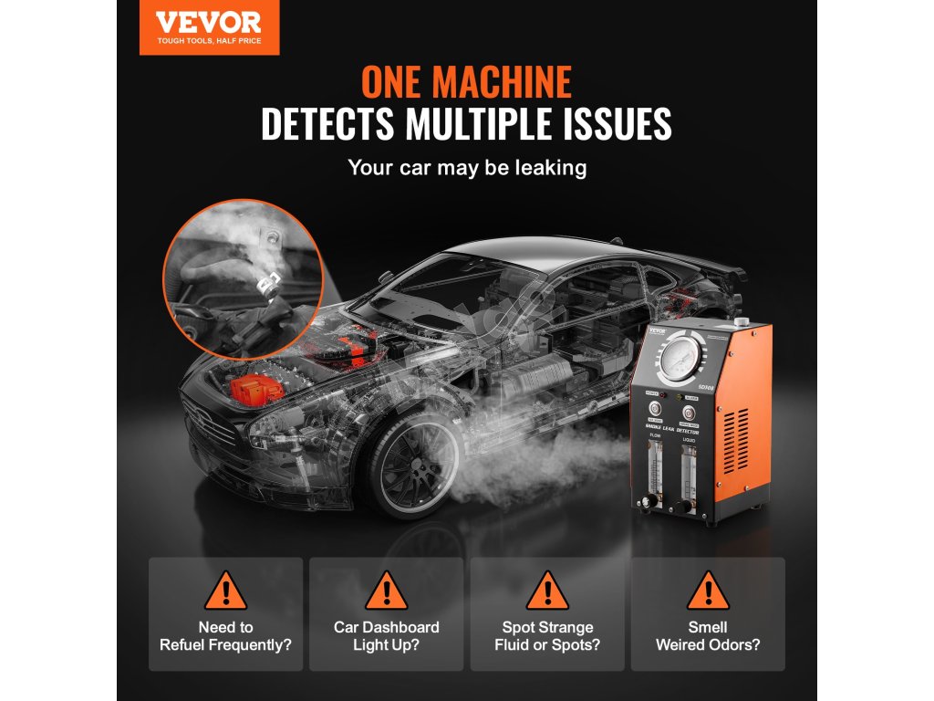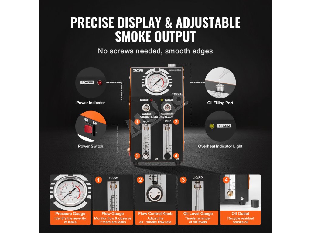 Automobilový dymostroj VEVOR je dokonalým spoločníkom na testovanie tesnosti! Či už ide o systém EVAP, systém palivovej nádrže, výfukový a sací systém, test tesnenia vozidla, tento stroj zvládne všetko. Ideálny pre automobily, motocykle, snežné skútre, štvorkolky, ľahké nákladné vozidlá - s ľahkosťou pokrýva diagnostické potreby.