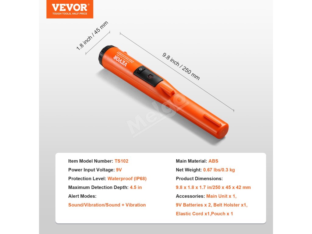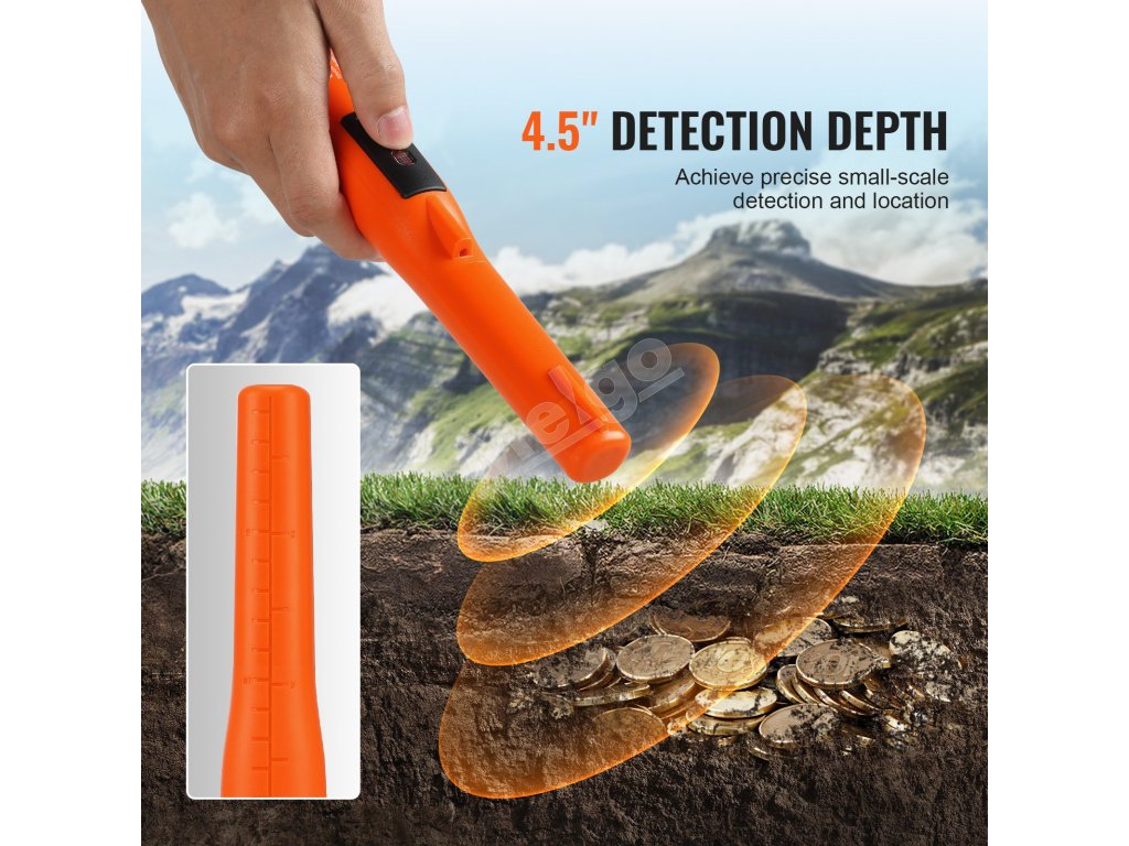 Ručný pinpointer IP68, detekcia 114mm/4.5", 3 režimy, púzdro, 9V