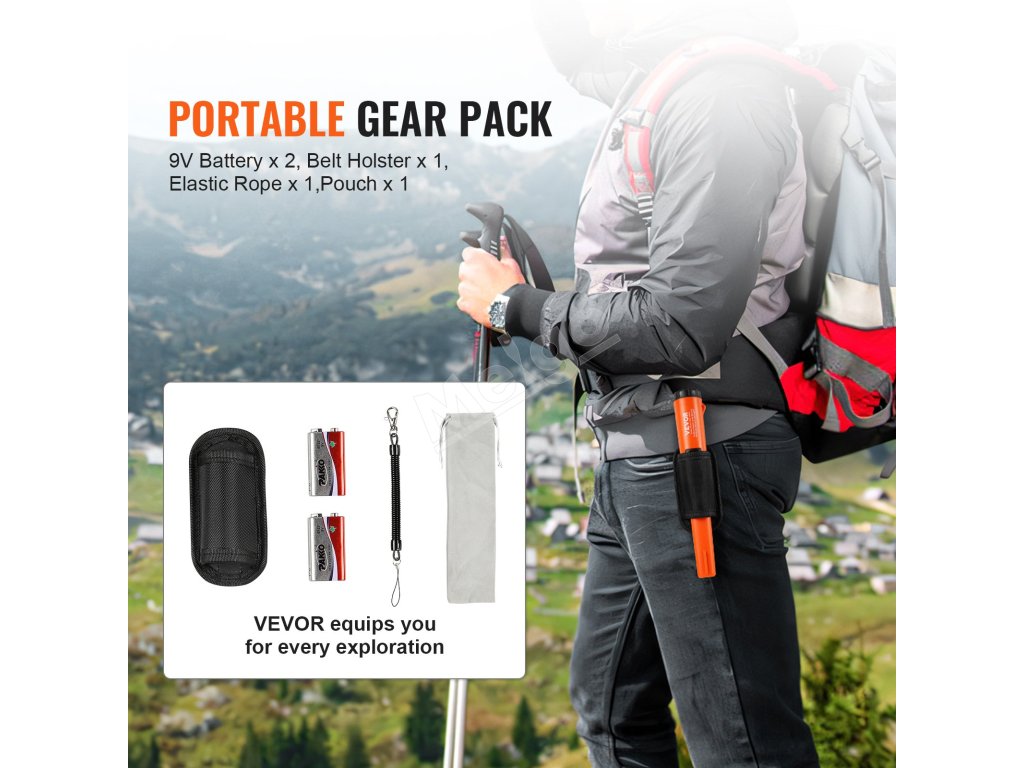 K nášmu ručnému detektoru kovov poskytujeme základné detekčné vybavenie vrátane dvoch batérií, puzdra, elastického lana a vrecka. S týmto príslušenstvom si môžete vychutnať pohodlné a komfortné hľadanie pokladov.