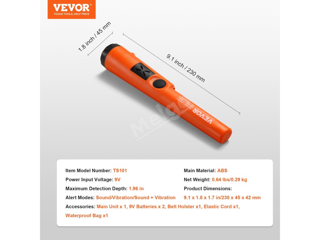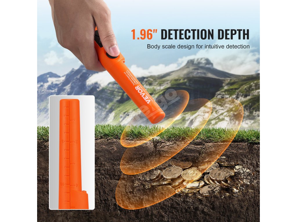 Ručný pinpointer s hĺbkou 50mm/1.96", 3 režimy, čiastočne vodotesný