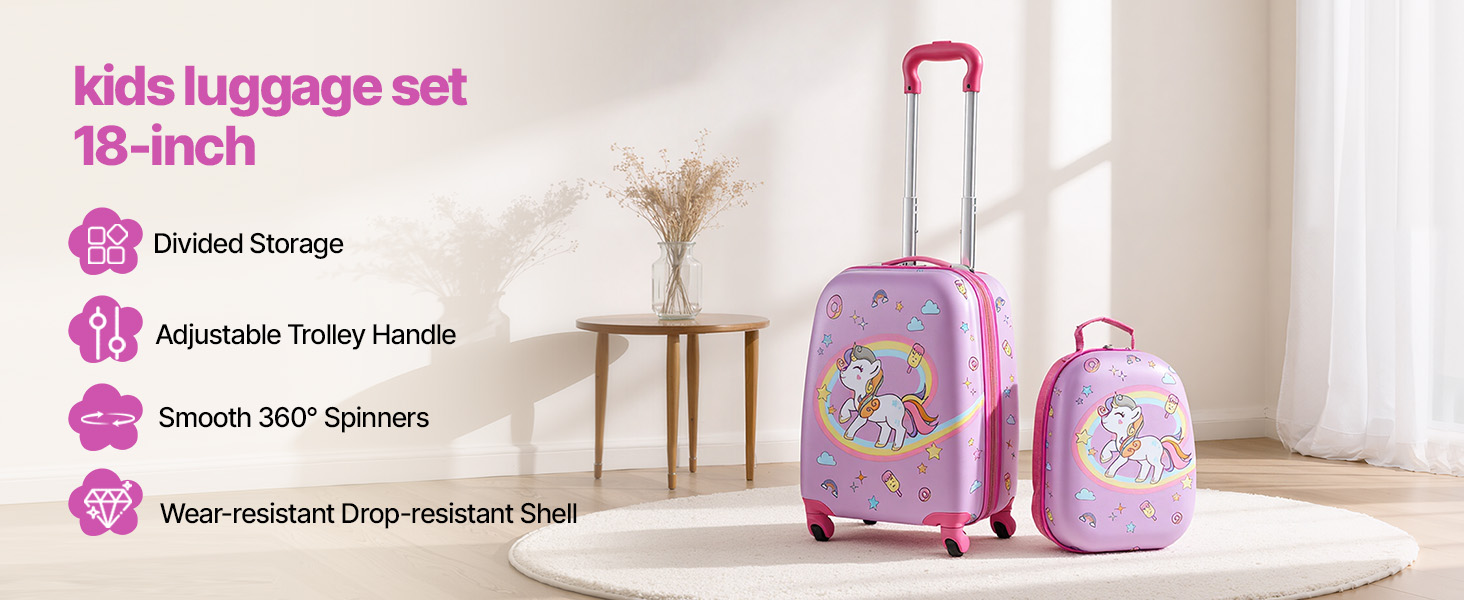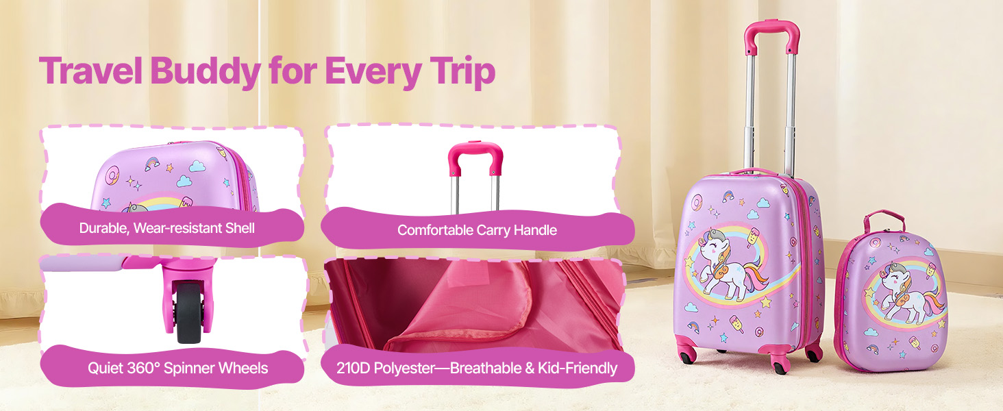 Táto 2-dielna detská batožinová sada spĺňa požiadavky na príručnú batožinu a uľahčuje cestovanie. Odolný povrch, prehľadné priehradky, nastaviteľná rukoväť a hladké otočné kolieska pomáhajú deťom efektívne baliť a s istotou sa pohybovať.