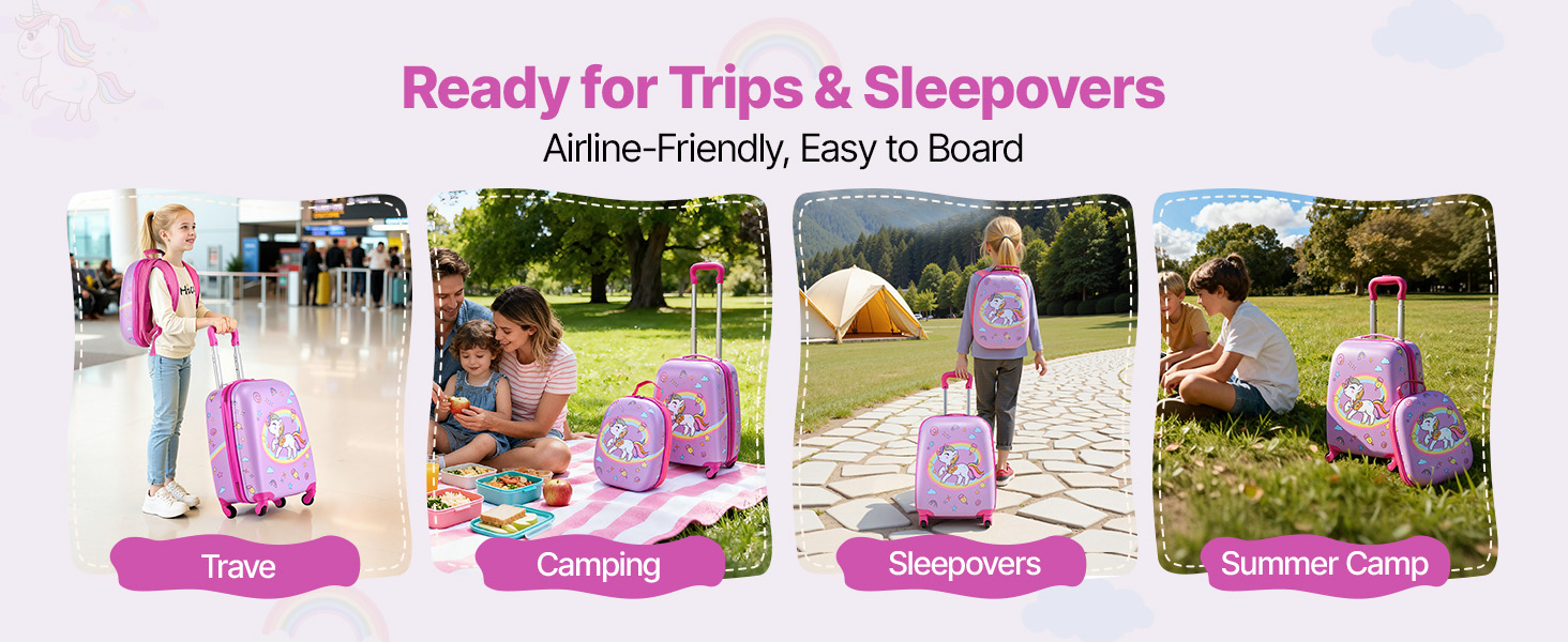 Táto detská batožina je vhodná na dovolenky, kempovanie, prespávanie u kamarátov a letné tábory. Vaše dieťa si môže ľahko prenášať nevyhnutné veci pri zmene miesta a rutiny.