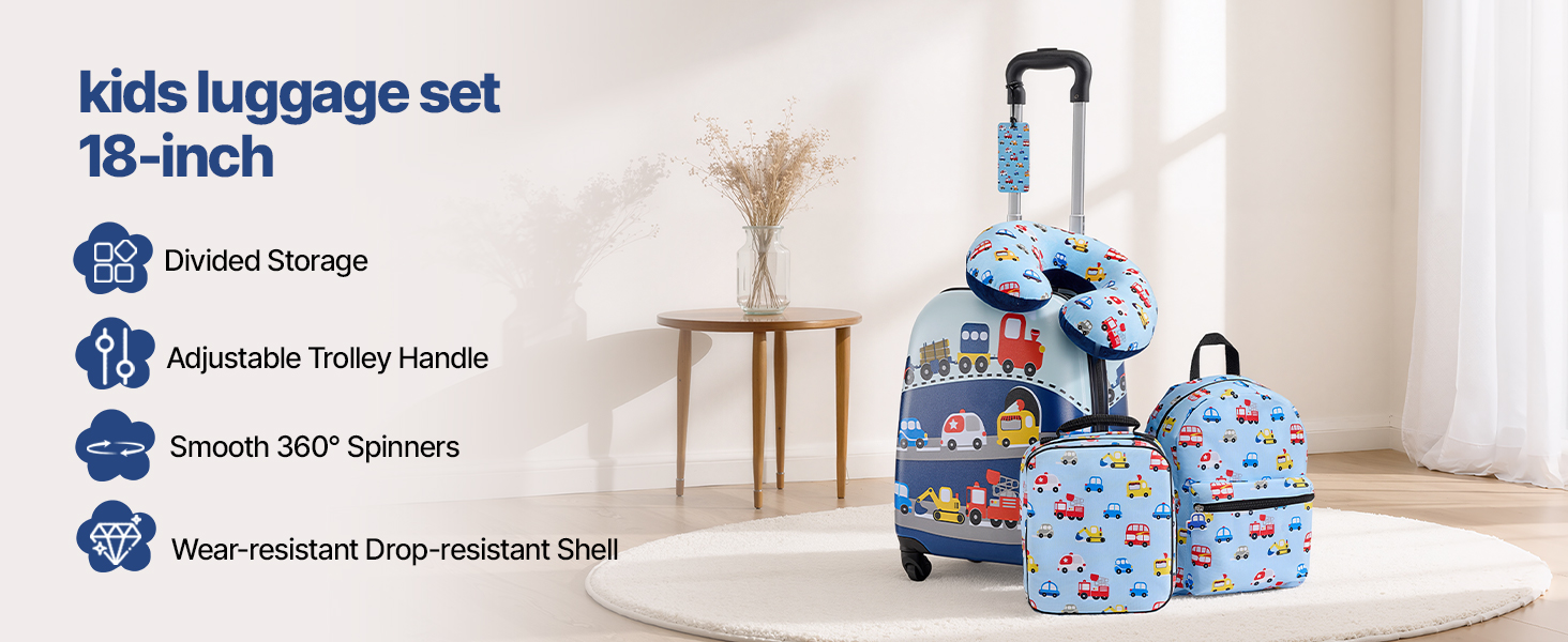 Detský set 5 dielov, 45.7 cm kufor s kolieskami, batoh, u vankúš