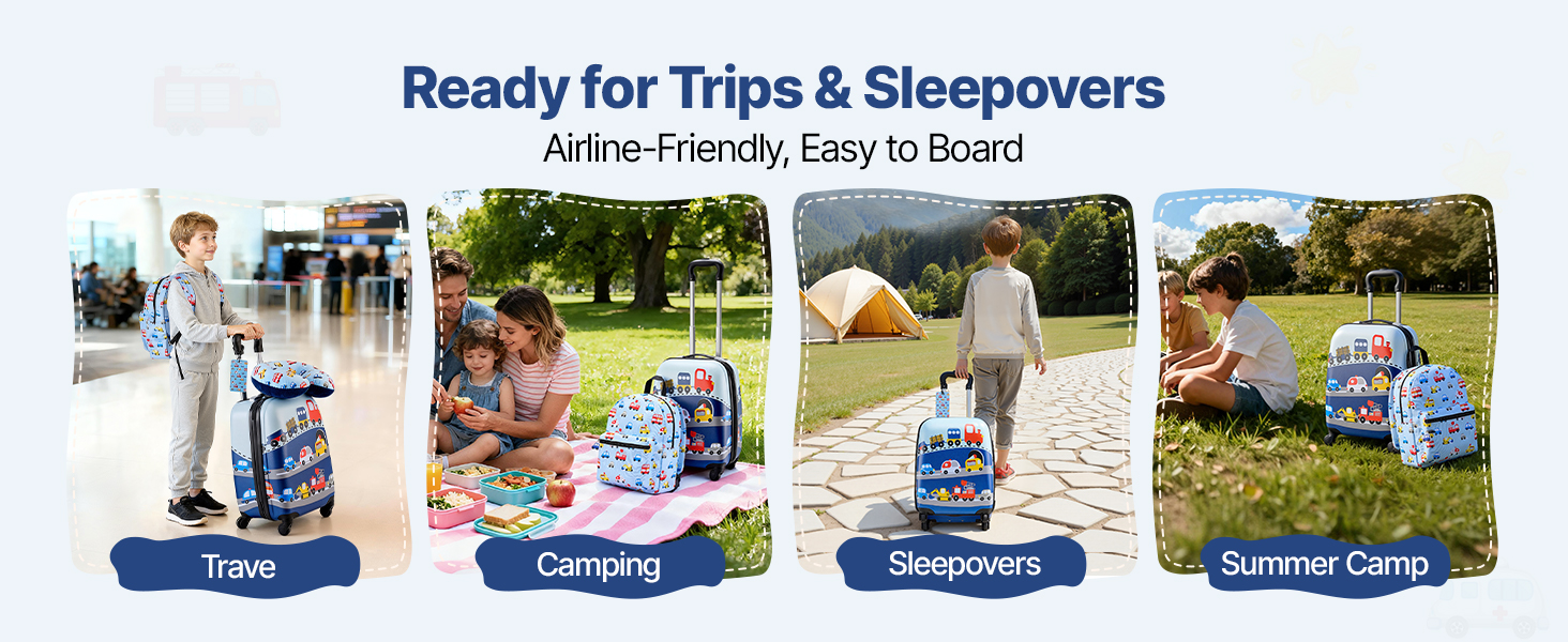 Táto detská batožina je vhodná na dovolenky, kempovanie, prespávanie u kamarátov a letné tábory. Vaše dieťa si ľahko prenáša nevyhnutné veci pri zmene miesta a rutiny.