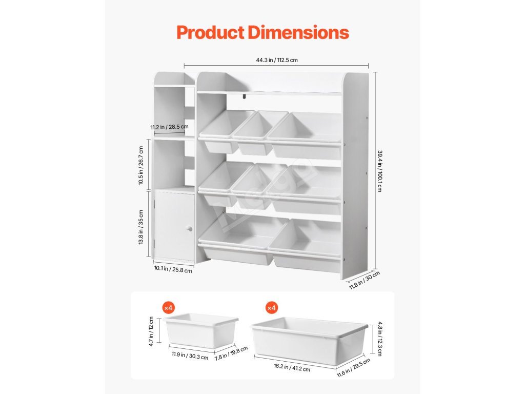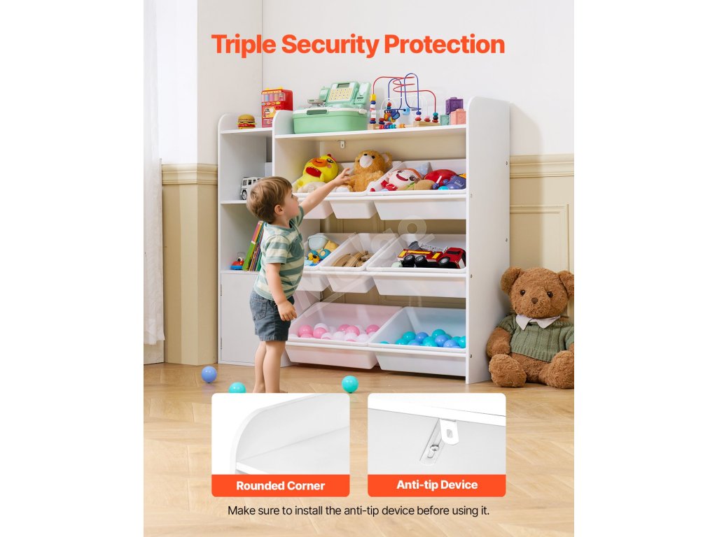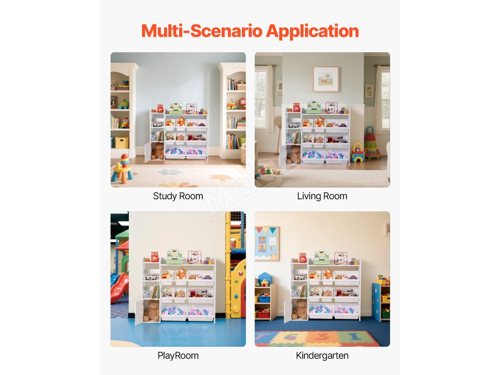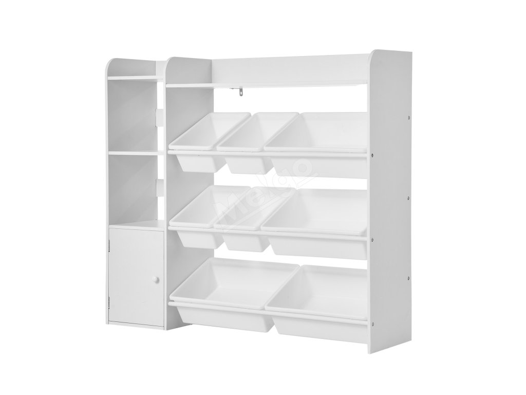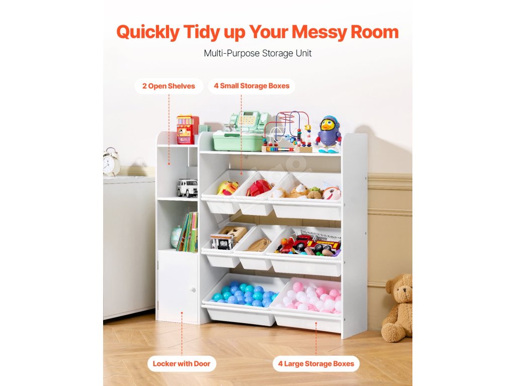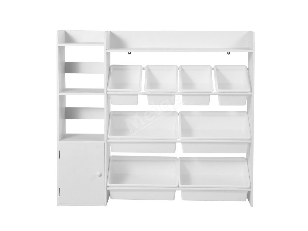 Tento detský organizér na hračky kombinuje 2 otvorené police, 8 úložných boxov a 1 skrinku, ktoré poskytujú dostatok priestoru na hračky, knihy, písacie potreby, bloky a ďalšie. Pomáha udržiavať všetko prehľadne usporiadané a ľahko dostupné.