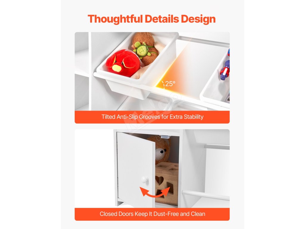 Tento detský organizér na hračky predstavuje ideálne riešenie na ukladanie hračiek, kníh, písacích potrieb, kociek a ďalších vecí. Vďaka zábavnému a pútavému dizajnu pomáha deťom rozvíjať zručnosti samostatného skúmania a procesu organizovania a zároveň podporuje dobré návyky pre uprataný priestor.