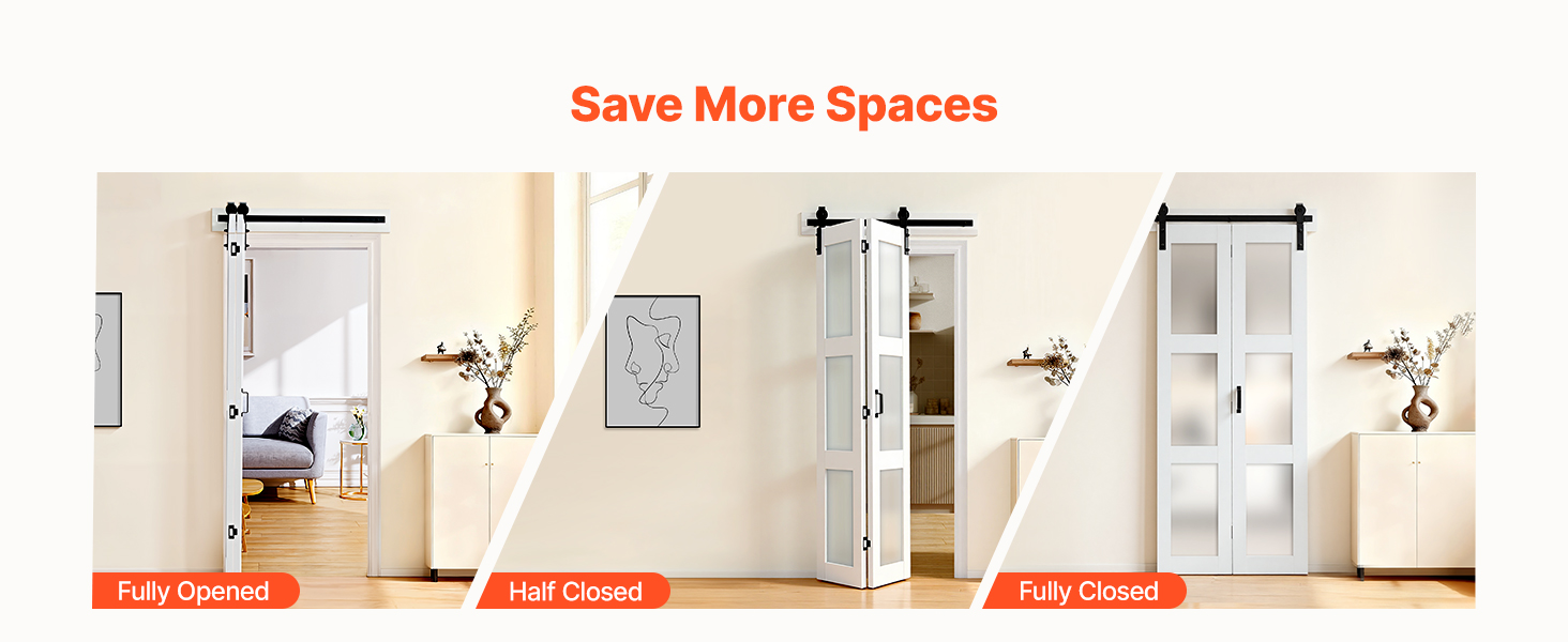 Dvojité skladacie dvere sú navrhnuté s vonkajšou závesnou koľajnicou a ich panely sa pohybujú po valčekoch, čím rozdeľujú alebo zakrývajú priestory a pomáhajú vám lepšie využiť každý meter štvorcový.