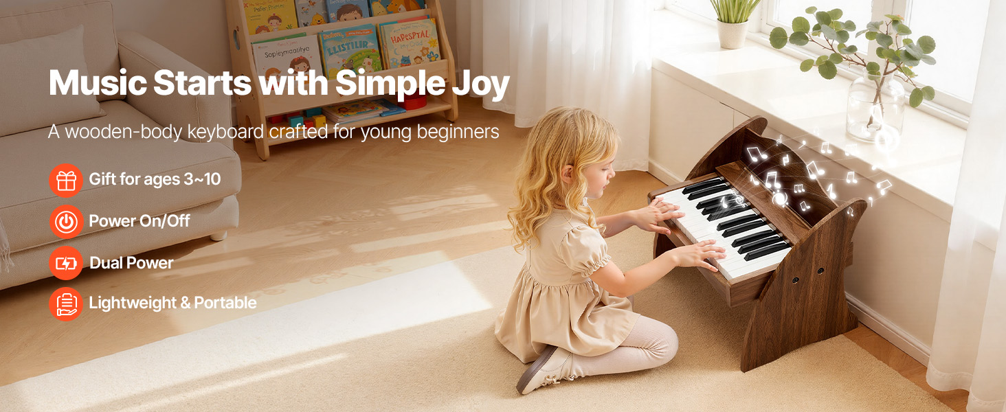 Ľahké, prenosné a pripravené na veľké aj malé okamihy, drevené detské klavír sa ľahko prenáša z izby do izby a dokonca aj vonku. Prirodzene zapadá do rodinných rutín a mení bežné priestory na mini hudobné kútiky.