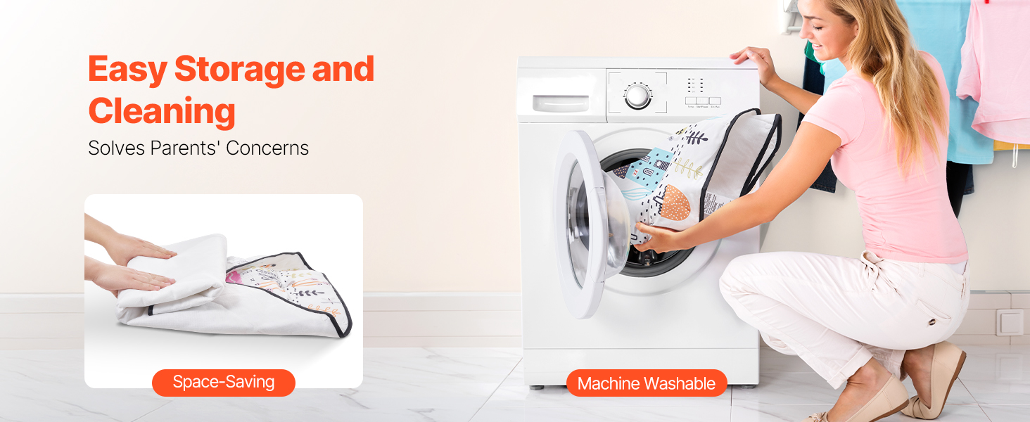 Túto detskú podložku na hranie a telocvičňu na aktivity možno prať v práčke na pohodlné čistenie a na účely skladovania ju možno ľahko zložiť, čo pomáha rodičom vyriešiť starosti s čistením a skladovaním.