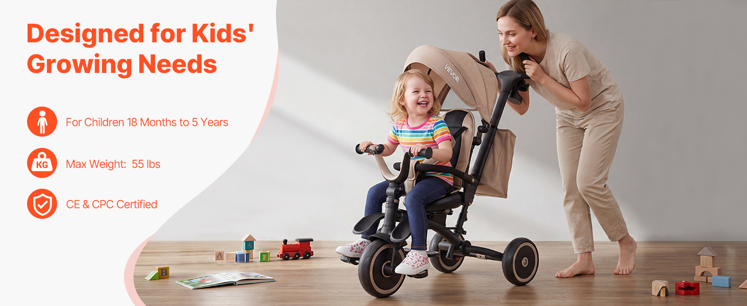 Táto detská trojkolka je určená pre deti vo veku od 18 mesiacov do 5 rokov. Nech už sú to začínajúci chodci alebo sebavedomí malí jazdci, všetci si môžu užiť radosť z jazdy.