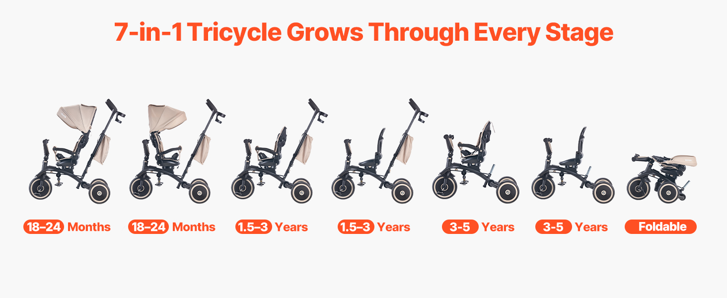 Rýchlo sa montuje a demontuje a ponúka 7 režimov použitia, vrátane tlačenia, chôdze a jazdy. Skladacie riadidlá a zadné koleso uľahčujú prenášanie na cestách a skladovanie doma.