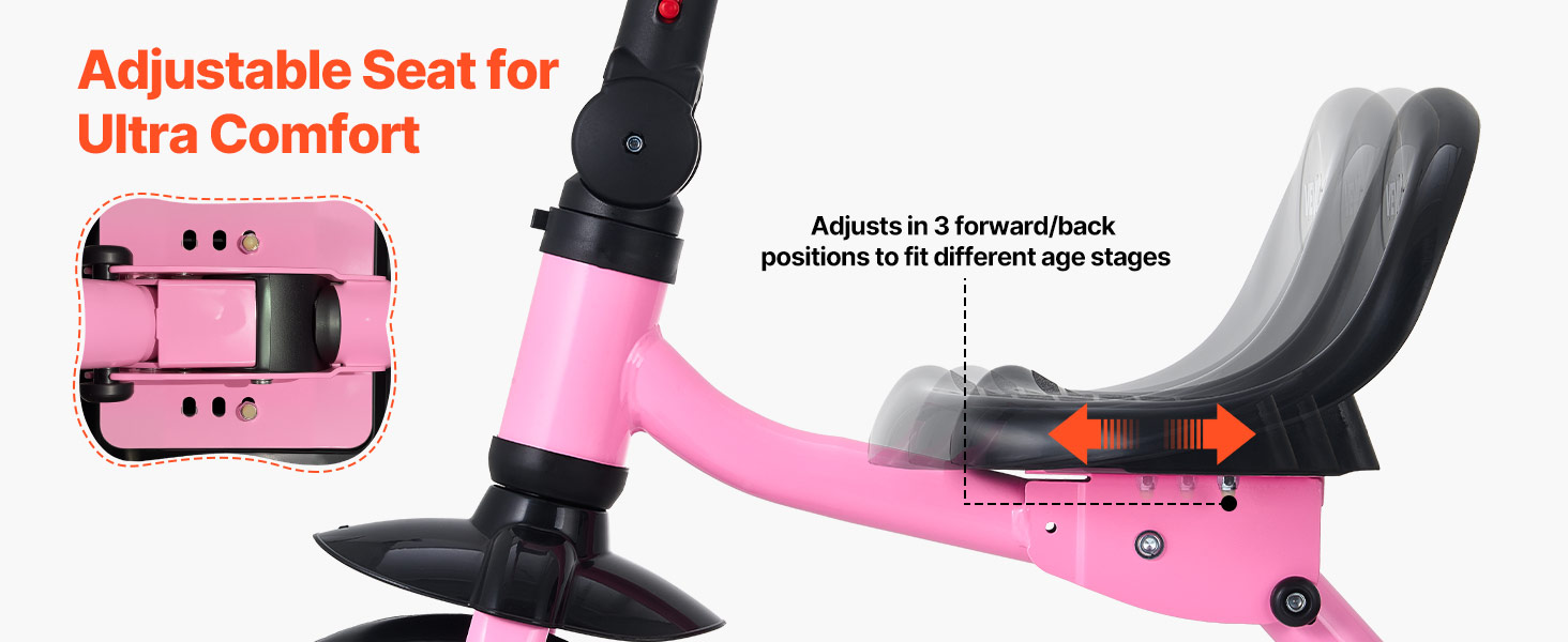 Sedadlo je nastaviteľné v 3 polohách, čo umožňuje deťom rôznej výšky nájsť pohodlnú polohu pri jazde pre ešte príjemnejší zážitok.