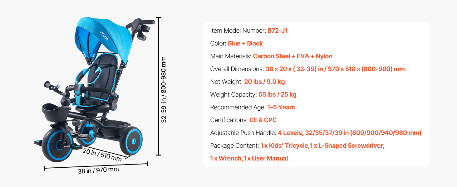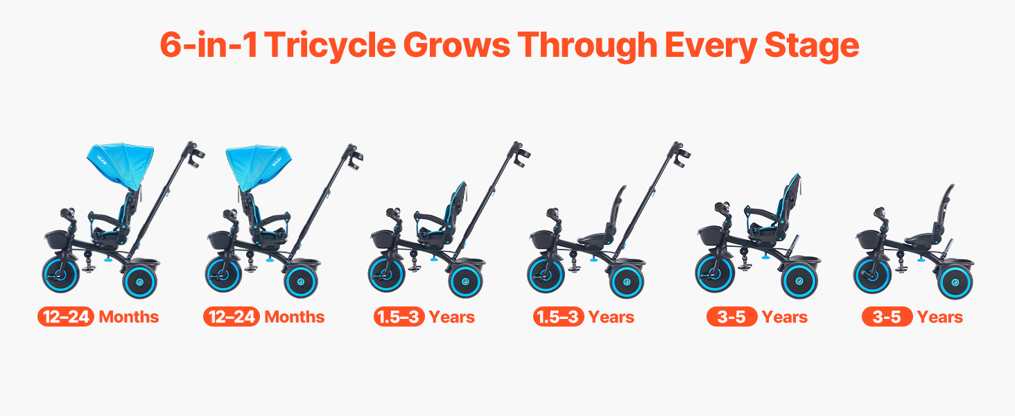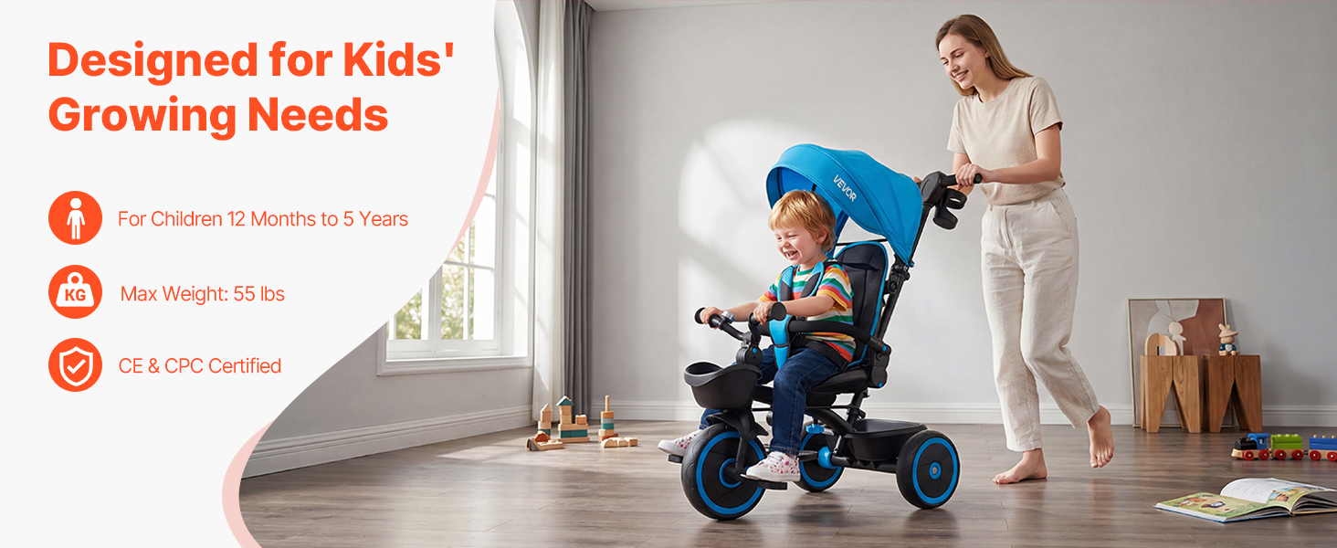 Táto detská trojkolka je určená pre deti vo veku od 12 mesiacov do 5 rokov. Nech už sú to začínajúci chodci alebo sebavedomí malí jazdci, všetci si môžu užiť radosť z jazdy.